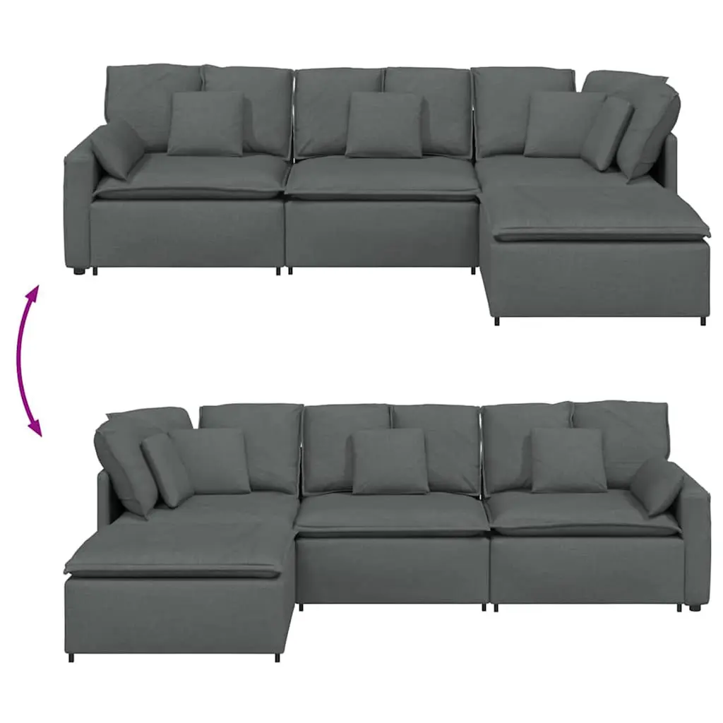 Vidaxl Modular Sofa With Footstool&cushions Fabric Dark Gray