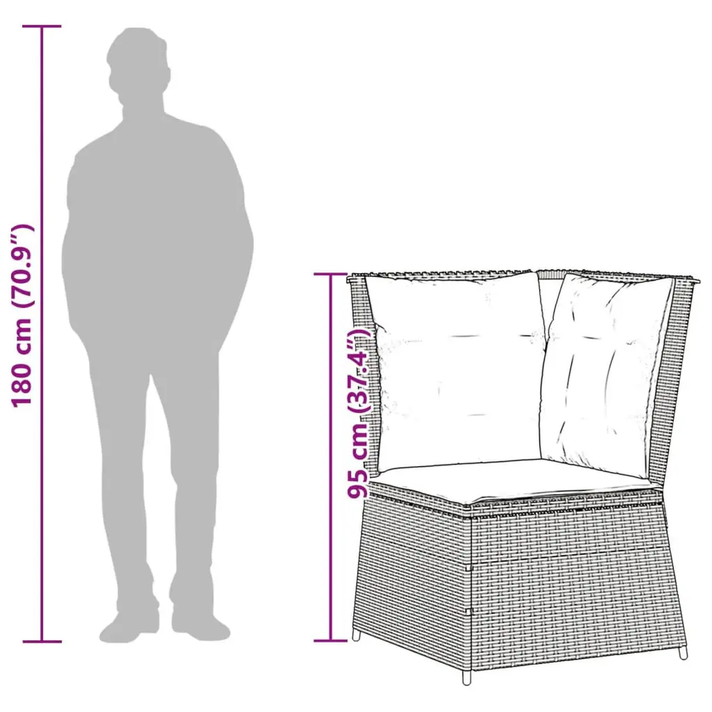 Vidaxl Patio Sofa Light Grey Pe Rattan One Size Modular Garden Sofa