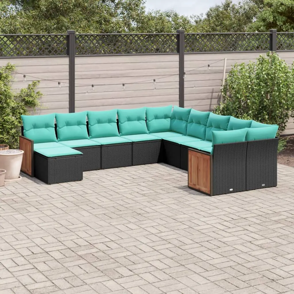 This 11 Piece Garden Sofa Set brings comfort and style to your outdoor spaces. It's great for balconies and patios, where the snazzy black synthetic rattan and bright blue cushions come together for a stunning look that fits right in with modern garden designs. The set includes arm sofas, middle seats, and fluffy cushions, ensuring you can lounge in luxury whether it’s a casual meet-up or a posh gathering. Spacious Seating: This sofa set accommodates up to 11 people, making it perfect for entertaining friends and family outdoors. You will love how it provides ample space for everyone to enjoy a comfortable seating experience. Durable Materials: Crafted with UV-resistant synthetic rattan, this garden sofa set withstands the elements while maintaining its contemporary look. The materials ensure longevity and can handle outdoor conditions effortlessly. Modular Design: The modular configuration allows you to easily reconfigure the seating arrangement. This flexibility is ideal for adapting the setup for various events, allowing you to create a cozy conversation area or an open lounge. Removable Cushions: Each cushion features a zipper closure for easy removal, making cleaning a breeze. You can keep the cushions looking fresh and new, ensuring that your seating remains inviting and attractive over time. Beautiful Aesthetics: The combination of black and blue colors elevates the visual appeal, enhancing your outdoor space. It blends seamlessly with various garden styles, offering a chic touch to any patio environment.