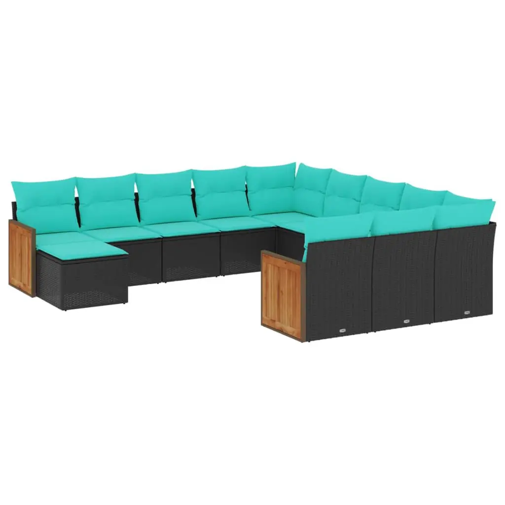 Vidaxl Patio Sofa Set Black Pe Rattan, Powder-Coated Steel Large Modular