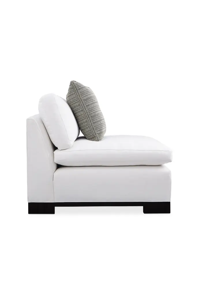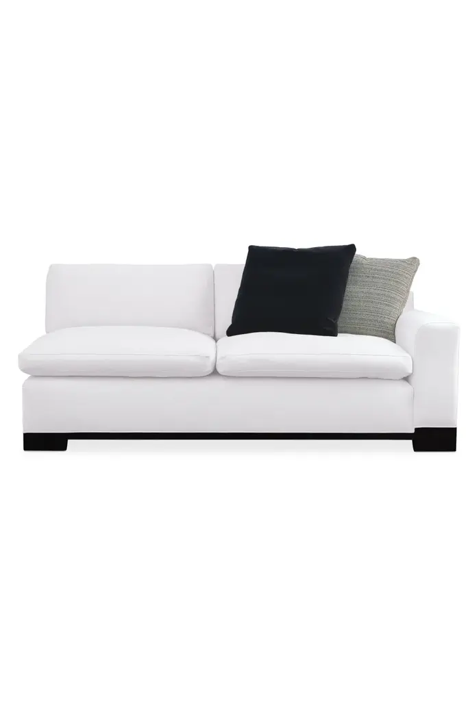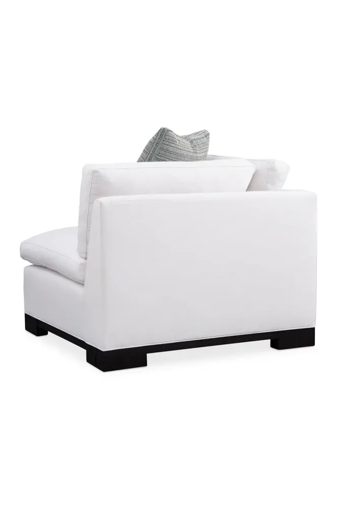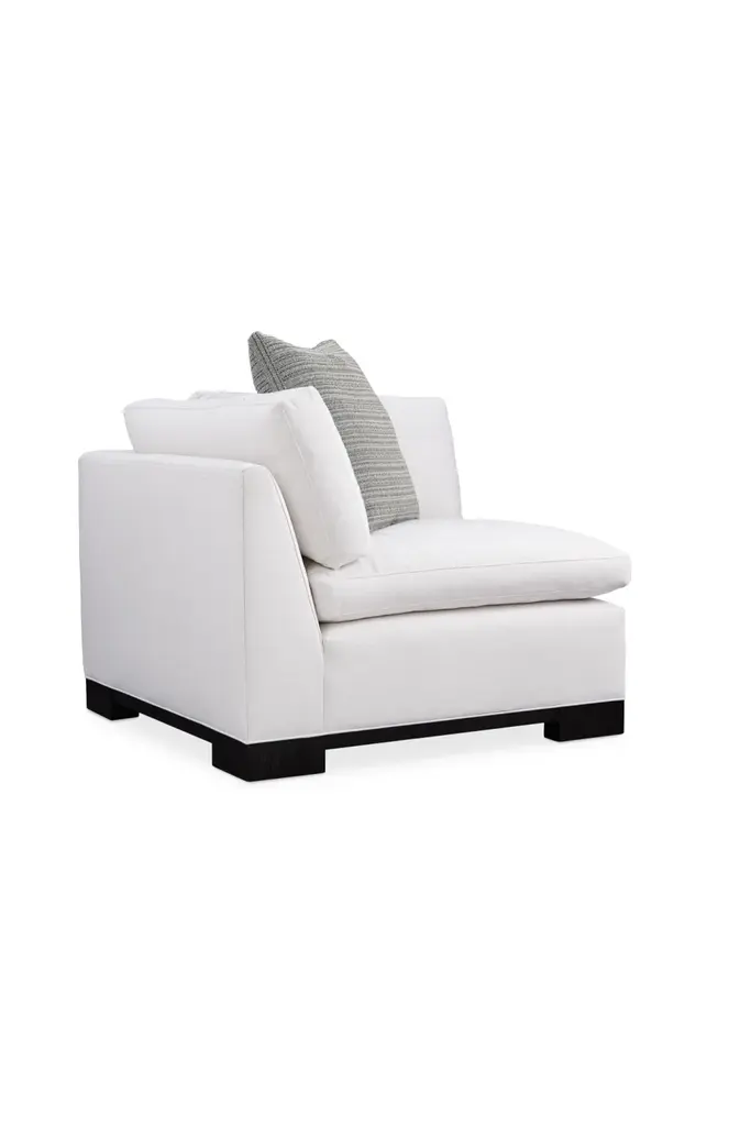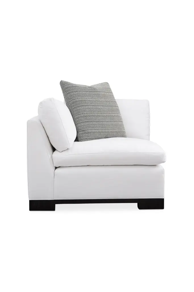 Designed for comfort and a crowd, everyone is a fan of the Refresh sectional. At once bold and timeless, its plush design illustrates the exceptional result of when fashion and comfort converge. Its refreshing styling is equally cozy and rewarding to relax into. Just sit back and you’ll appreciate the surprisingly lush support of its low, deep design and thin, pillow-topped cushions filled with luxurious down-blend cushioning. A luxurious fabric cover and block feet finished in Midnight Terrain add a finishing touch. Designed to surround you in stylish comfort, this configurable seating option offers the perfect mix of form and function.