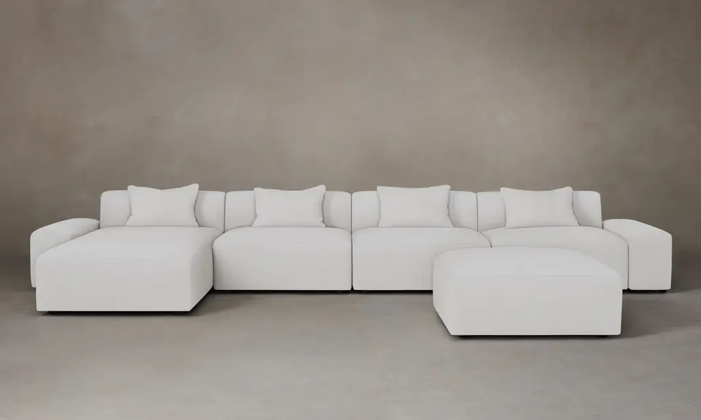 Our Wind Down Collection is the modern, tidy answer to your modular seating needs. Made with durable, stain-resistant fabric, this sofa has clean lines, balanced proportions, and inviting feather-fiber cushions.