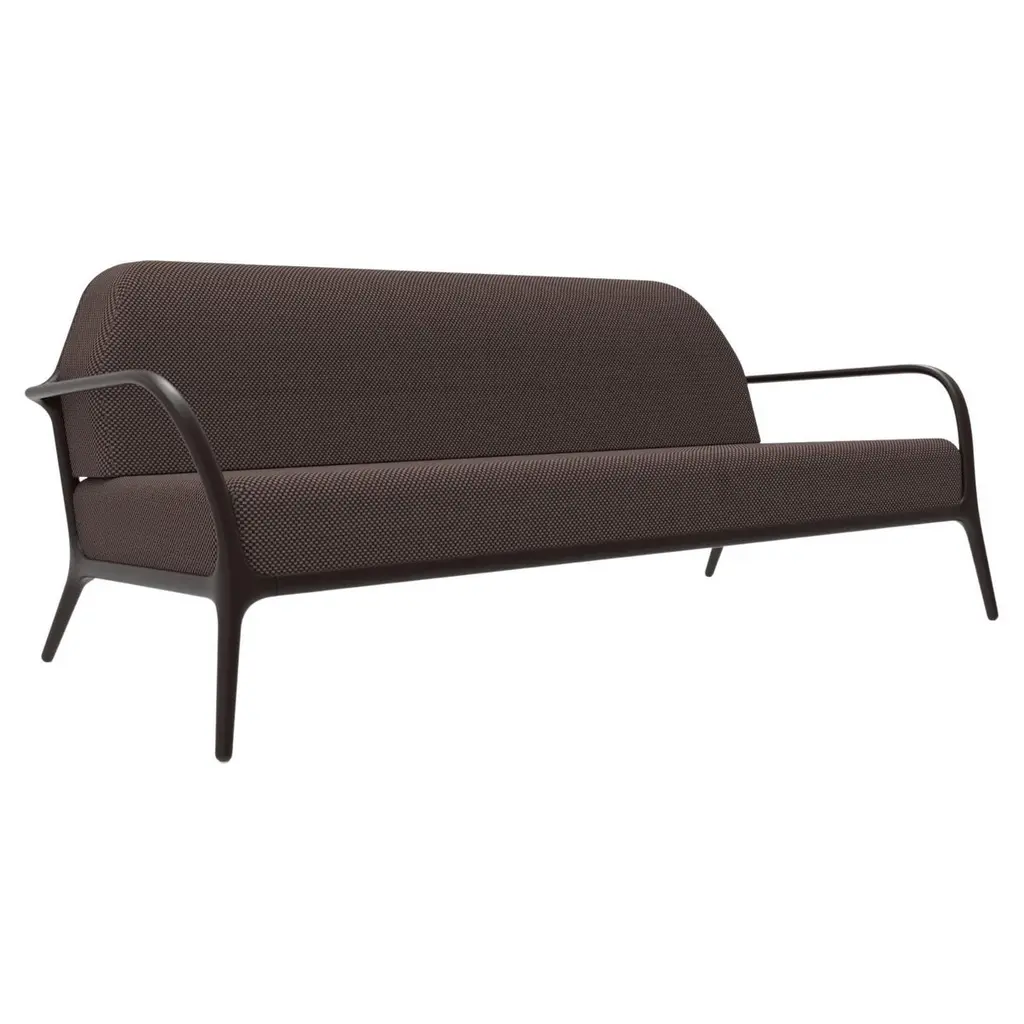 Xaloc left 160 chocolate modular sofa by mowee dimensions: d100 x w160 x h81 cm (seat height 42cm) material: aluminium, textile weight: 37 kg also available in different colors and finishes. Xaloc synthesizes the lines of interior furniture to extrapolate to the exterior, creating an elegant and versatile collection that can coexist in both contexts. The textile of its elements also want to represent this concern to provide the exterior with the warmth of the interior furniture.