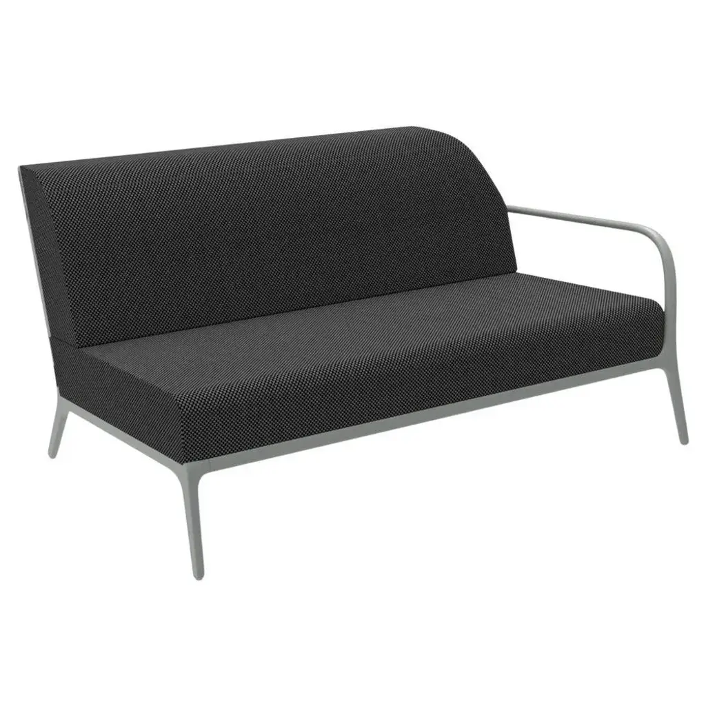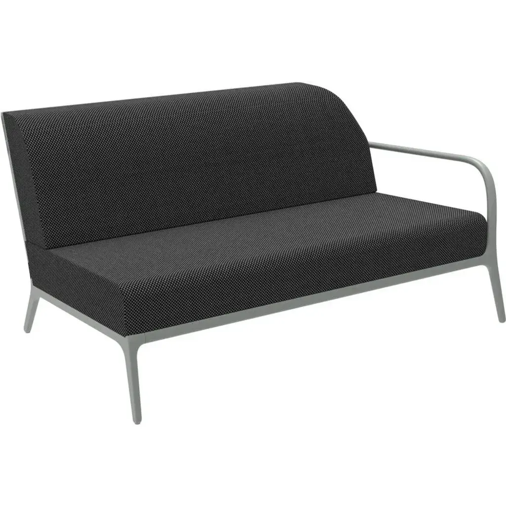 Xaloc left 160 silver modular sofa by mowee dimensions: d100 x w160 x h81 cm (seat height 42cm) material: aluminium, textile weight: 37 kg also available in different colours and finishes. Xaloc synthesizes the lines of interior furniture to extrapolate to the exterior, creating an elegant and versatile collection that can coexist in both contexts. The textile of its elements also want to represent this concern to provide the exterior with the warmth of the interior furniture.