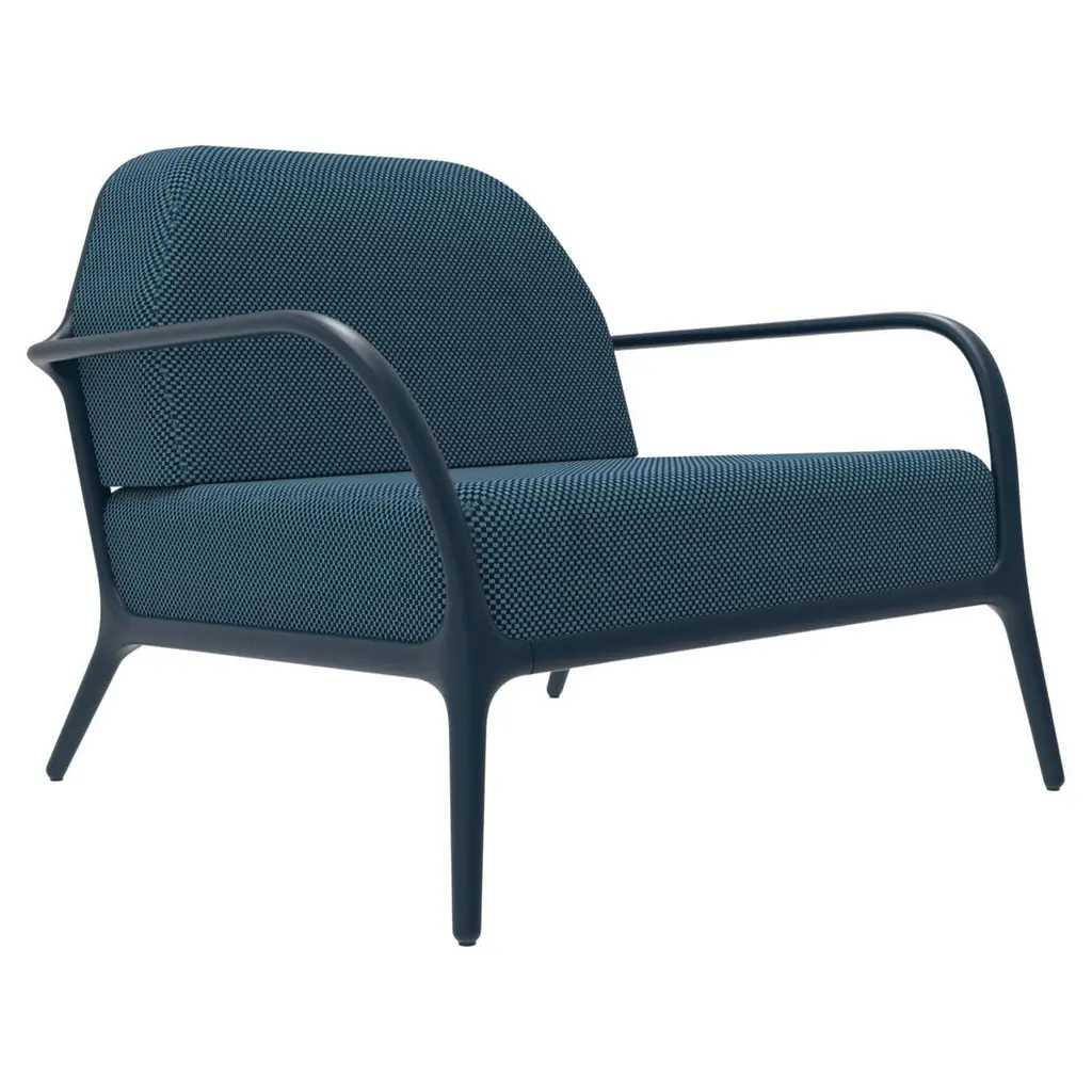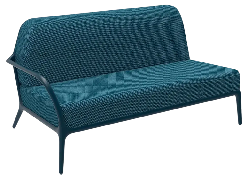 Xaloc left 90 navy modular sofa by MOWEEDimensions: D100 x W90 x H81 cm (Seat Height 42 cm)Material: Aluminium, TextileWeight: 25 kgAlso Available in different colours and finishes. Xaloc synthesizes the lines of interior furniture to extrapolate to the exterior, creating an elegant and versatile collection that can coexist in both contexts. The textile of its elements also want to represent this concern to provide the exterior with the warmth of the interior furniture. The name Xaloc comes from the wind with the same name. A strong wind typical of the Mediterranean area. A wind capable of eroding the environment it meets. The shapes of the collection represent this wind-induced erosion that generates natural and harmonic forms.Möwee is part of the work, effort and commitment of Gaviota, a leading company in the outdoor sector. It was set up as an independent venture to broaden horizons in the outdoor furniture world, with its own distinctive character and way of doing things. Freshness, simplicity, quality and design are at the heart of its DNA.