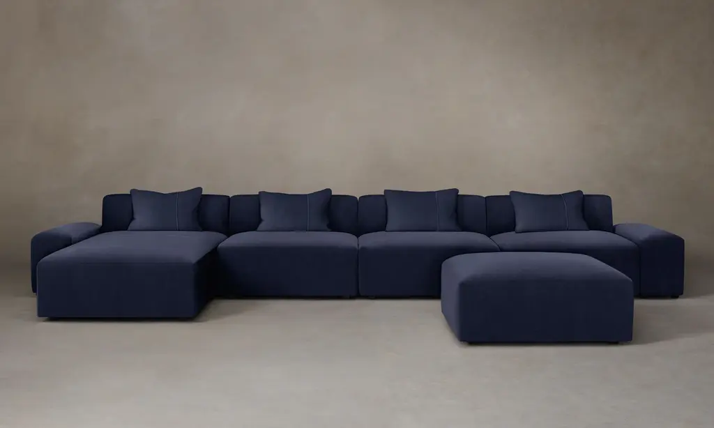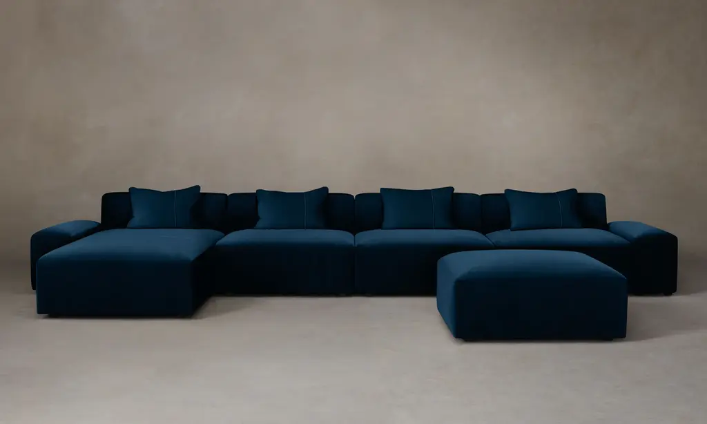 Zanotta Pianoalto Modular Sofa in Blue Fabric by Ludovica & Roberto PalombaThe range of modular or monobloc sofas allows many corner or straight compositions. Back cushions upholstered in polyurethane/ Dacron Du Pont or in 100% pure goose feathers. Fixed internal cotton cover. Removable external cover in fabric or leather.Additional Information:Material: Upholstery, steelUpholstery: Quid, cat. 40, 40358Dimensions: 472 W x 186 D x 65 H cmSeat height: 36 cmAvailable in other upholstery options: Cat. 20, Cat. 30, Leather 90, Leather 95, Leather 98, Leather 99Available in other structural options