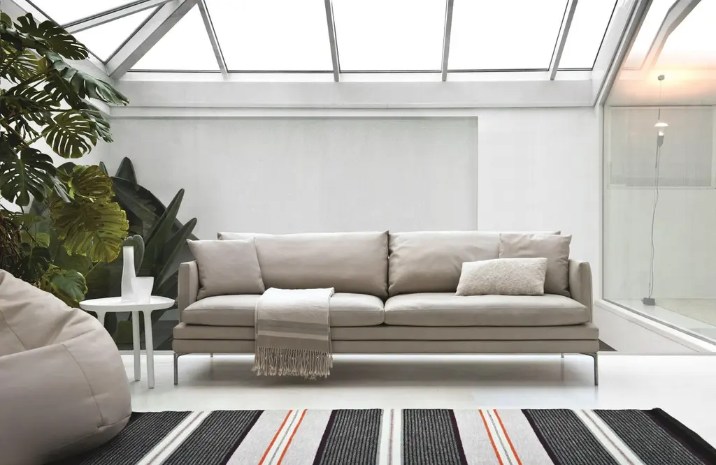 Zanotta William Modular Sofa In Brown Leather With Black Steel Frame