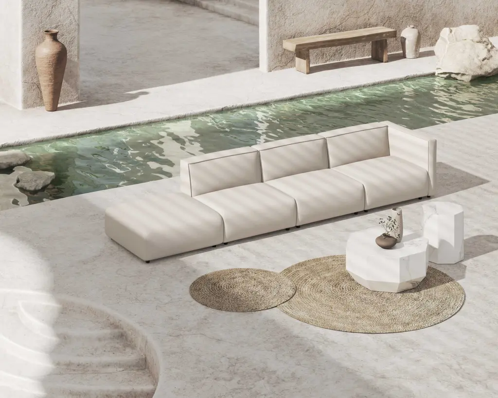 Recline into a unity of contemporary design and minimalist values with the Arya Outdoor Modular Loveseat. Perfect for relaxing with a book or a glass of wine on a calm summer night. The plush back and seat elegantly curves inwards, brimming with layers of sumptuous cushioning. Uncluttered and endlessly inviting, this piece offers a deep seat and angled back to take advantage of a clean design and tempting cushions. The Arya embodies the fundamental elements of modern design and effortlessly adds sleekness to any outdoor setting. Learn more about the Arya design here. Also available in an indoor version here.