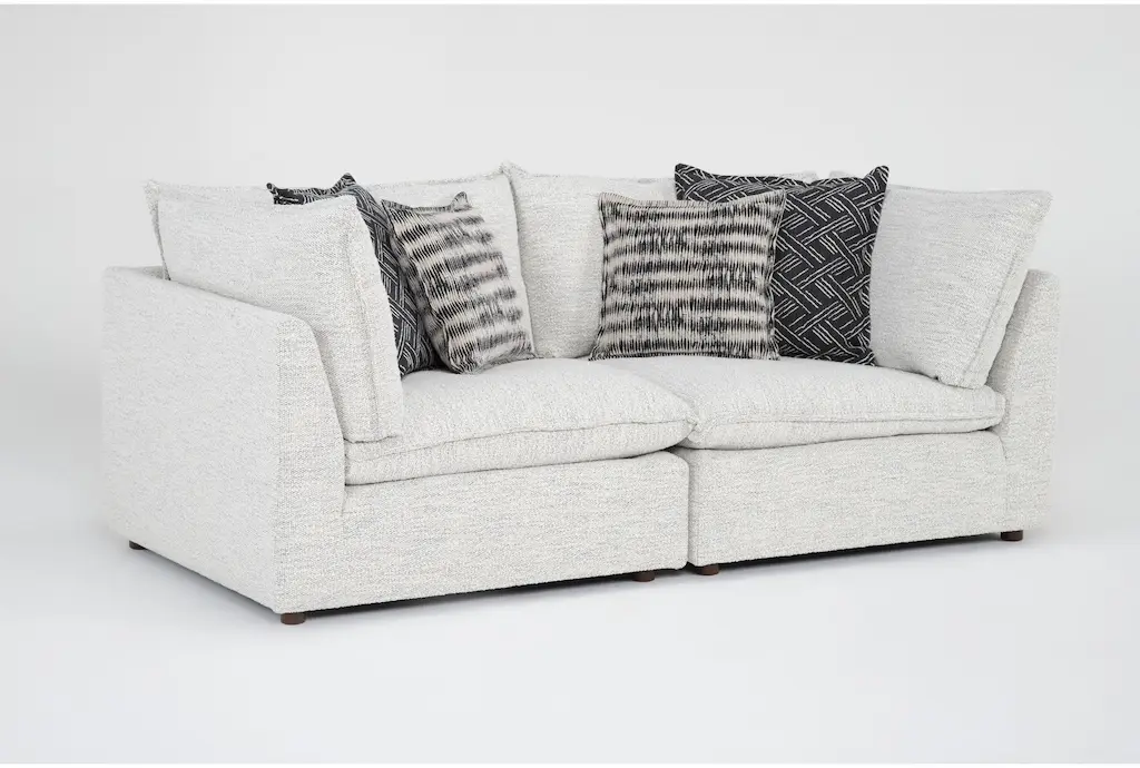 Weekend White Performance Fabric 2 Piece Modular Loveseat | Track Arms