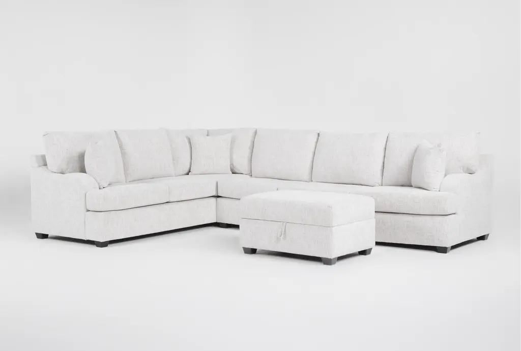 Alana Linen Grey White Fabric 5 Piece 126" Modular L-Shaped Sectional With Ottoman | Symmetrical