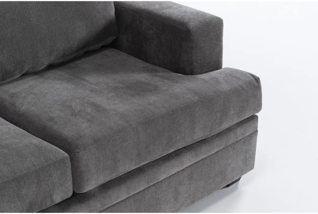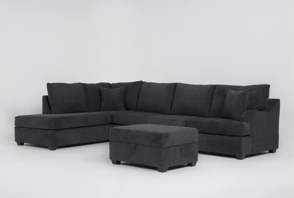 The Bonaterra Charcoal Grey Fabric 127" 2 Piece L-Shaped Sectional with Left Arm Facing Queen Memory Foam Sleeper Sofa Bed, Right Arm Facing Corner Chaise, and Storage Ottoman is a versatile and stylish addition to any living space. Its charcoal grey fabric upholstery and casual design make it a perfect fit for both bedrooms and living rooms. The sectional includes a queen-size memory foam sleeper, providing a comfortable sleeping space for guests.