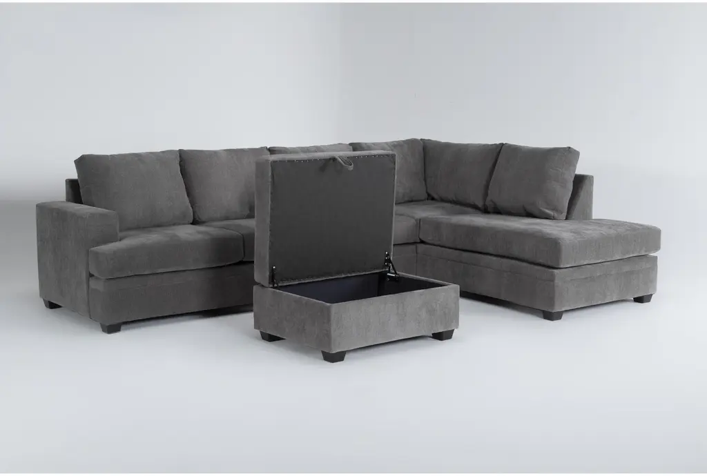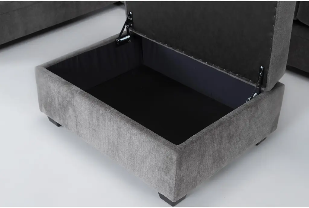Bonaterra Charcoal Grey Fabric 127" 2 Piece L-Shaped Sectional With Left Arm Facing Queen Memory Foam Sleeper Sofa Bedright Arm Facing Corner Chaise & Storage Ottoman