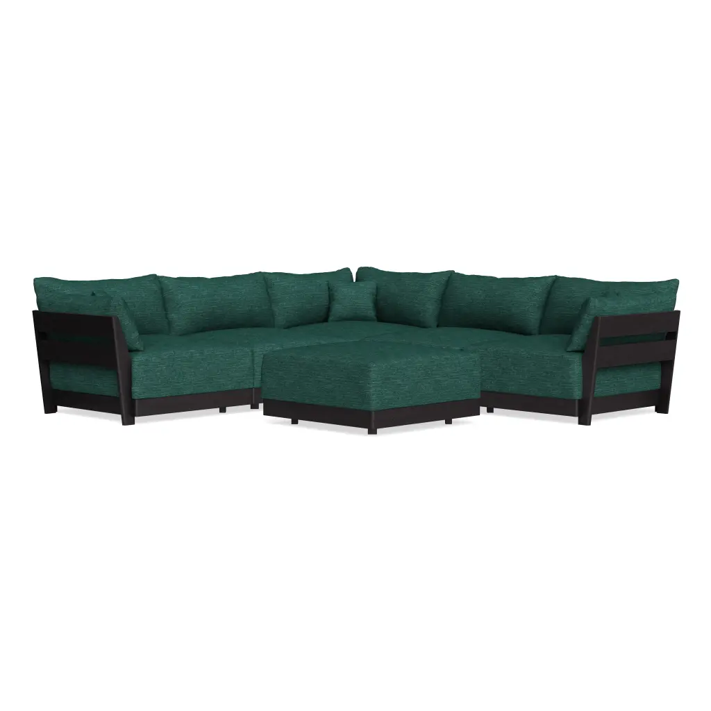 Modular Bondi Black 5-Seater Corner Sectional + Ottoman In Forest Green | Memory Foam Blend