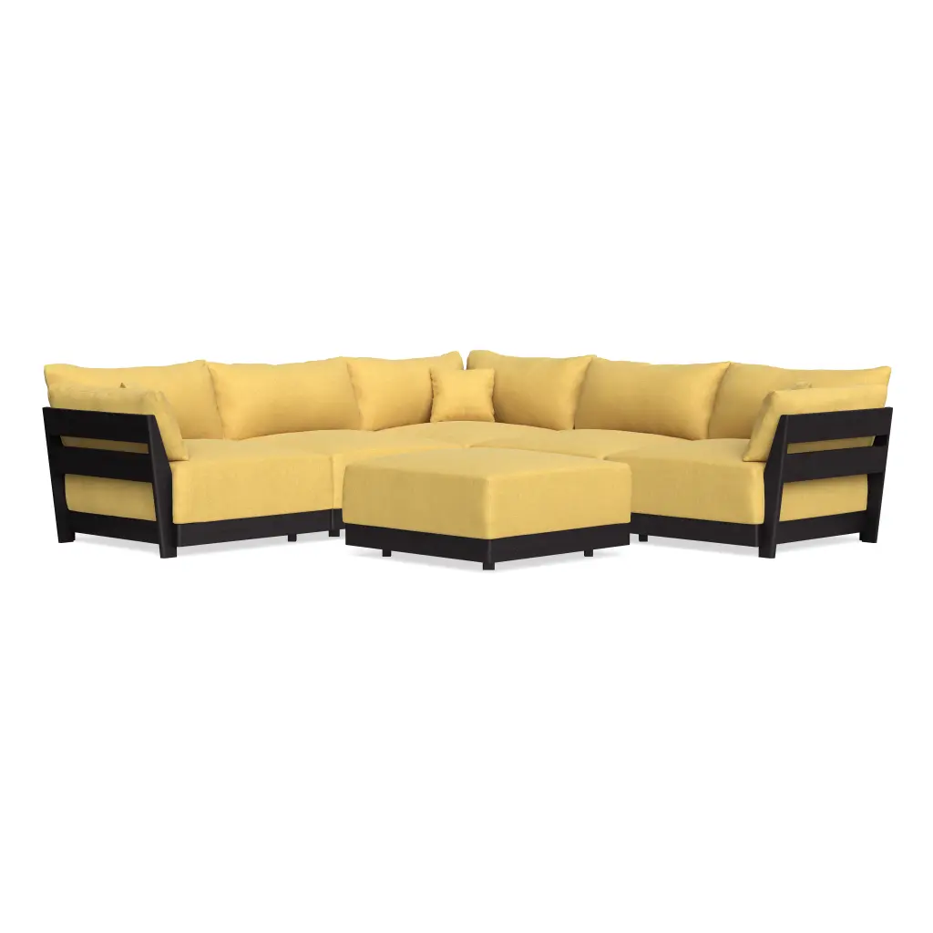 Modular Bondi Black 5-Seater Corner Sectional + Ottoman In Goldenrod | Classic Blend