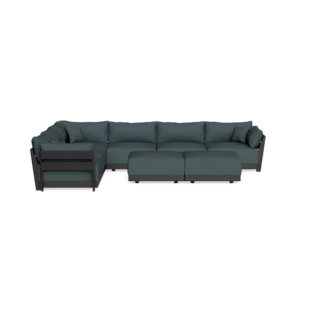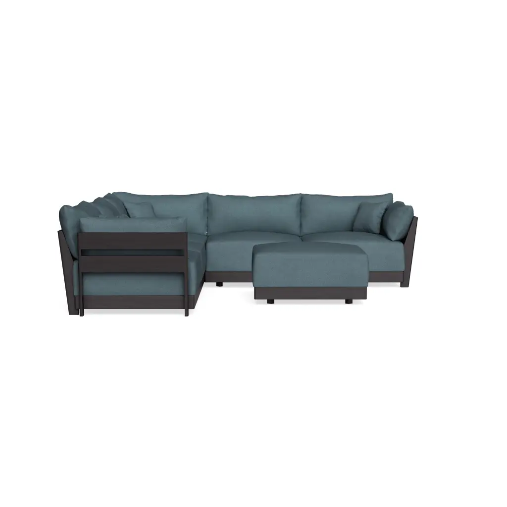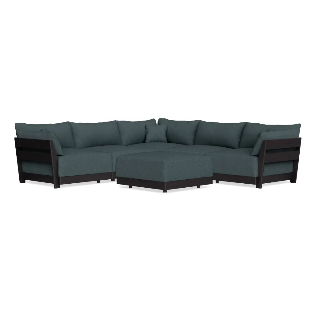 Modular Bondi Black 5-Seater Corner Sectional + Ottoman In Ocean Gray | Memory Foam Blend
