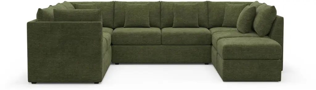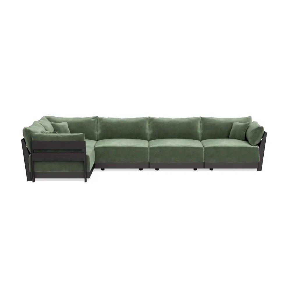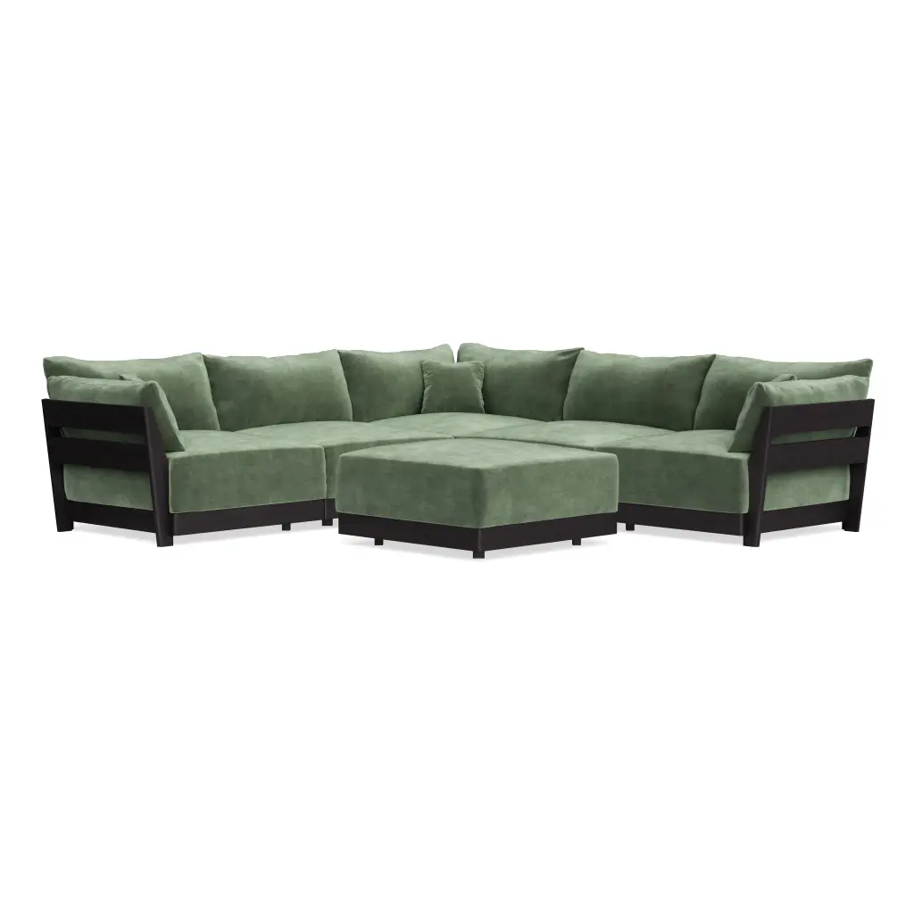 Modular Bondi Black 5-Seater Corner Sectional + Ottoman In Rosemary | Memory Foam Blend
