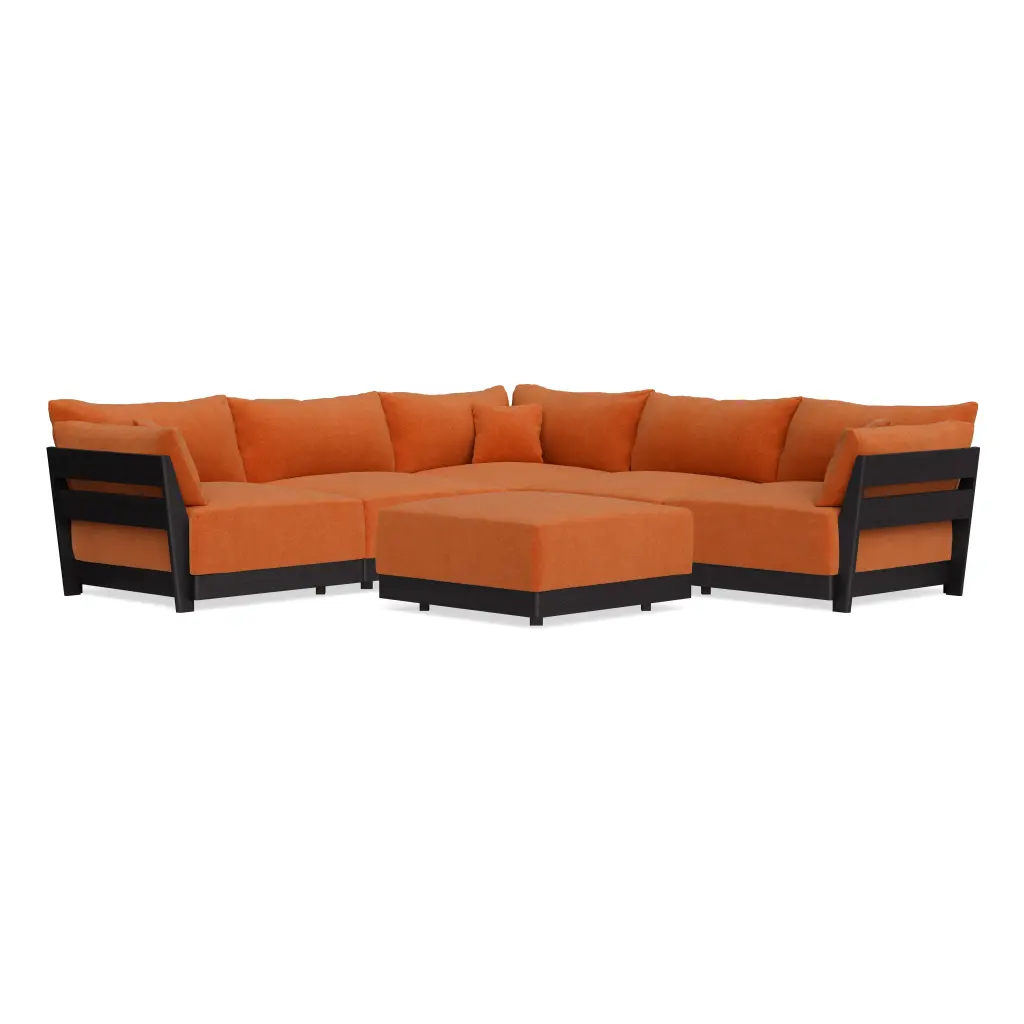 Modular Bondi Black 5-Seater Corner Sectional + Ottoman In Terracotta | Memory Foam Blend
