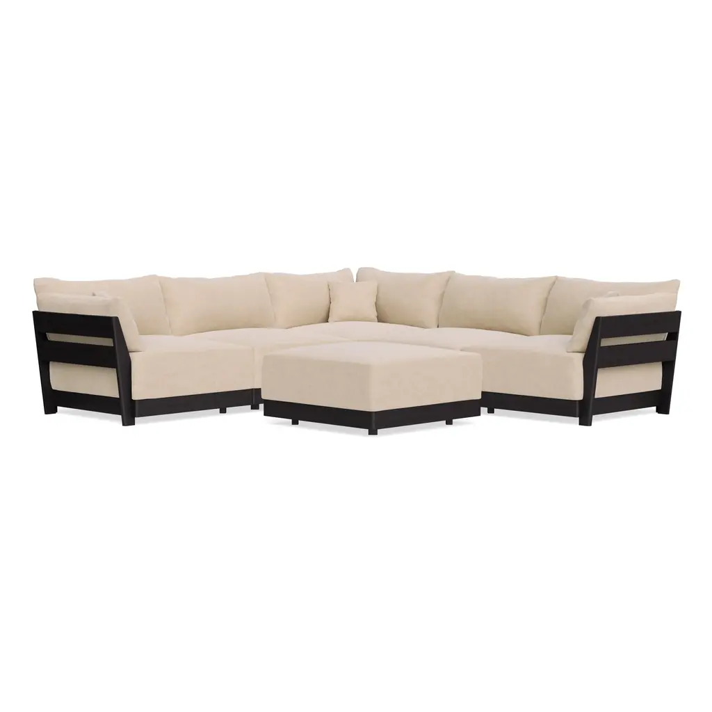 Modular Bondi Black 5-Seater Corner Sectional + Ottoman In Vanilla | Memory Foam Blend