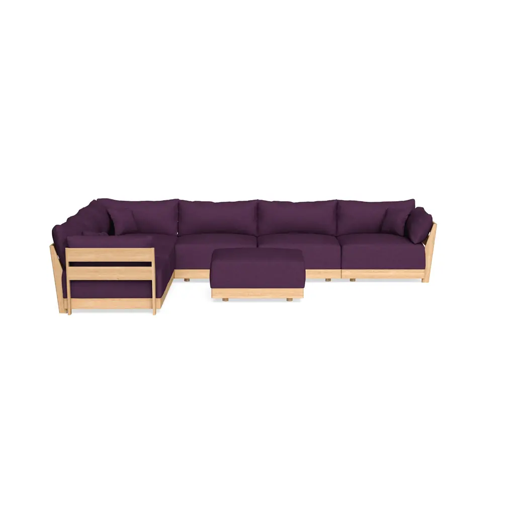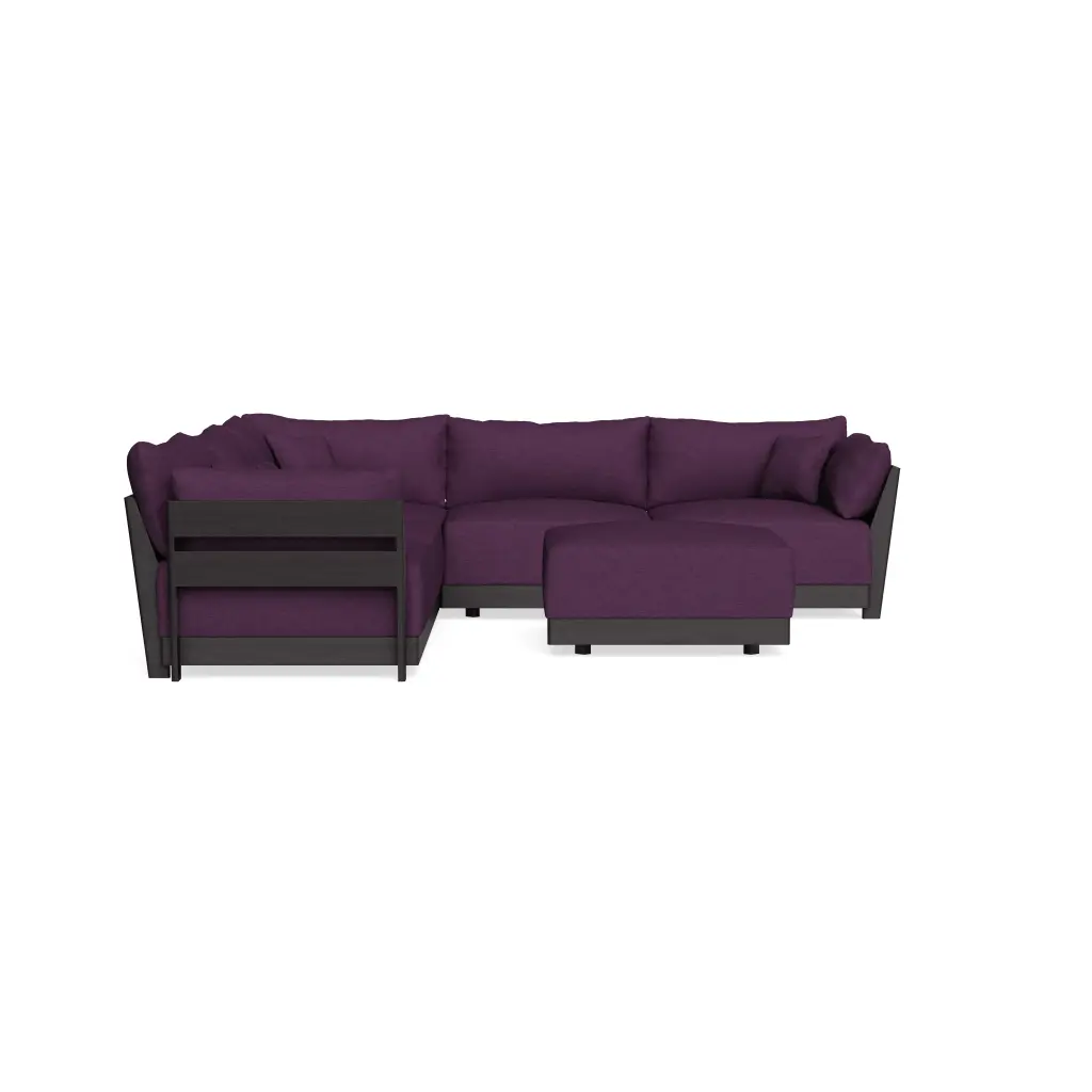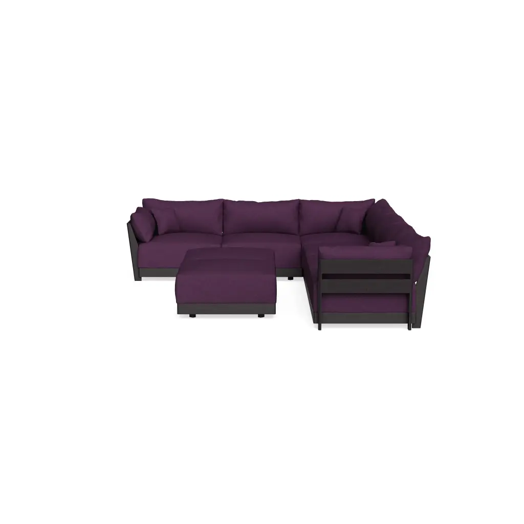 Modular Bondi Black 6-Seater Corner Sectional + Bench Ottoman In Aubergine | Memory Foam Blend
