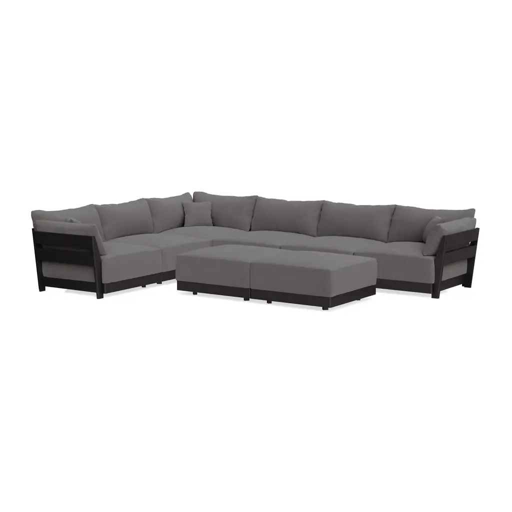 Modular Bondi Black 6-Seater Corner Sectional + Bench Ottoman In Burnt Ember | Classic Blend