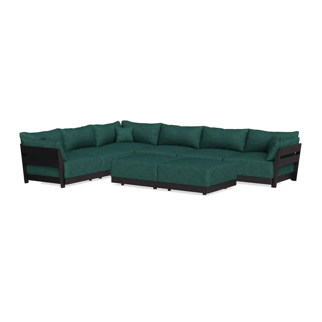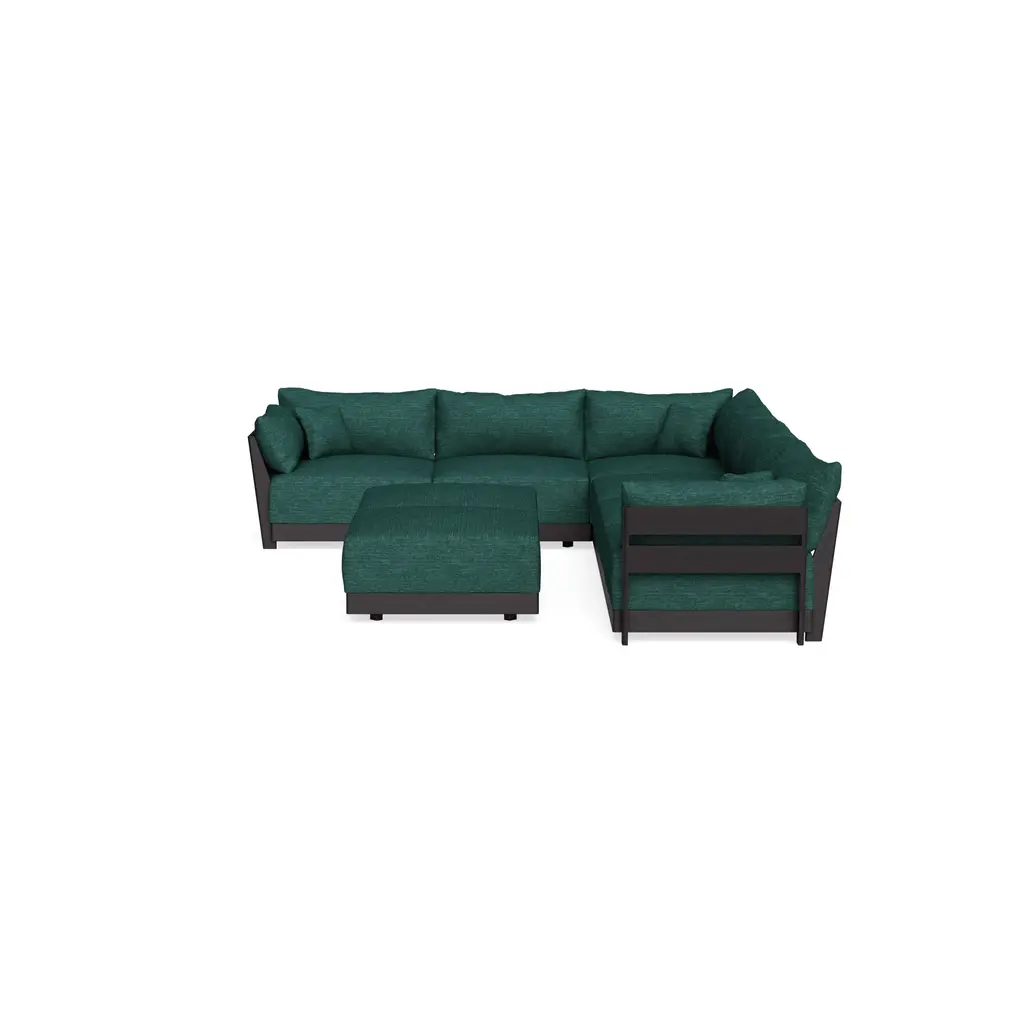 Modular Bondi Black 6-Seater Corner Sectional + Bench Ottoman In Forest Green | Classic Blend