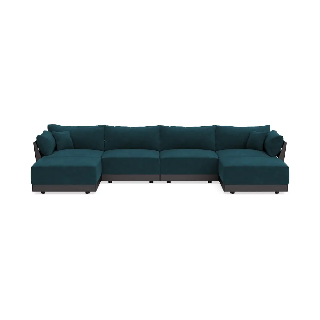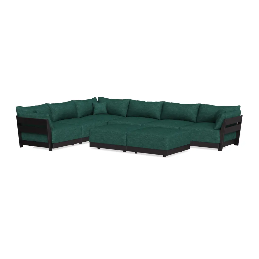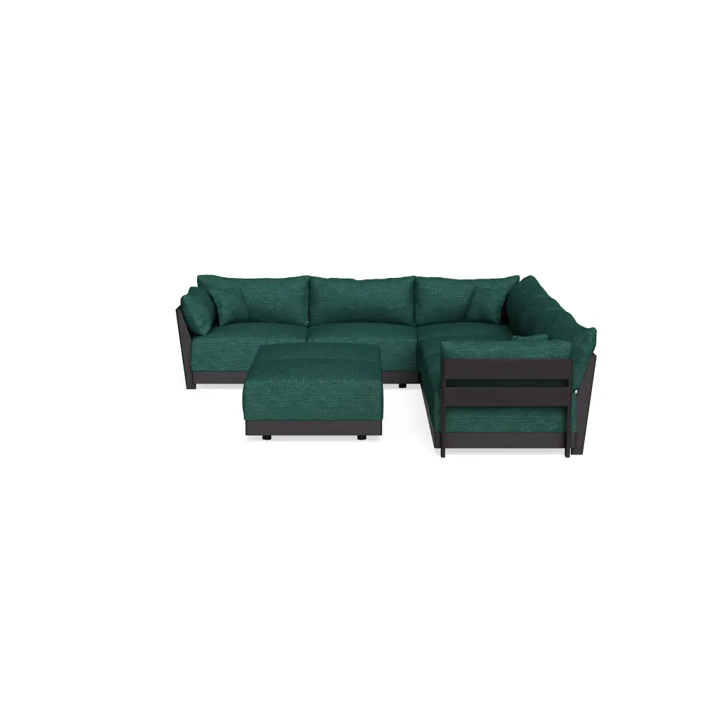 Modular Bondi Black 6-Seater Corner Sectional + Bench Ottoman In Forest Green | Memory Foam Blend