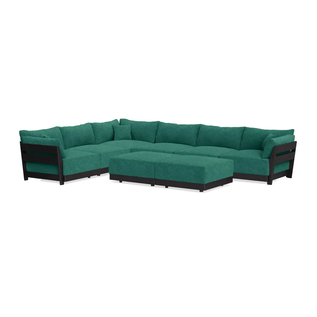 Modular Bondi Black 6-Seater Corner Sectional + Bench Ottoman In Jade Green | Classic Blend