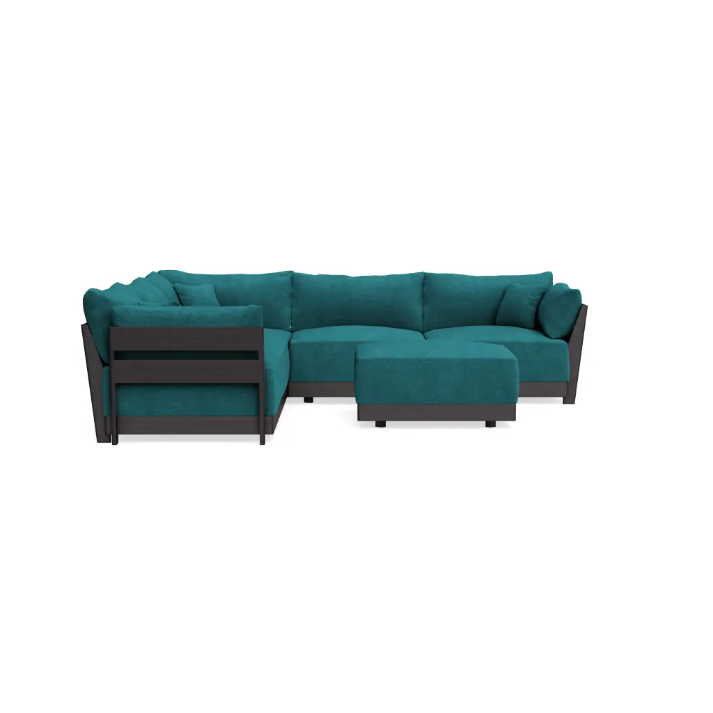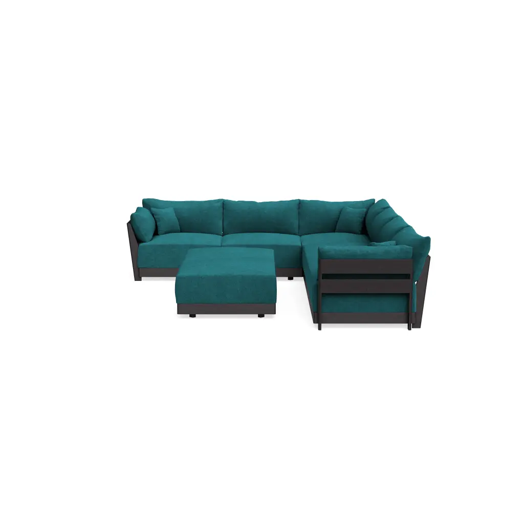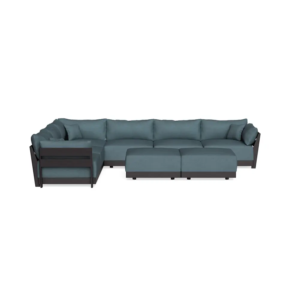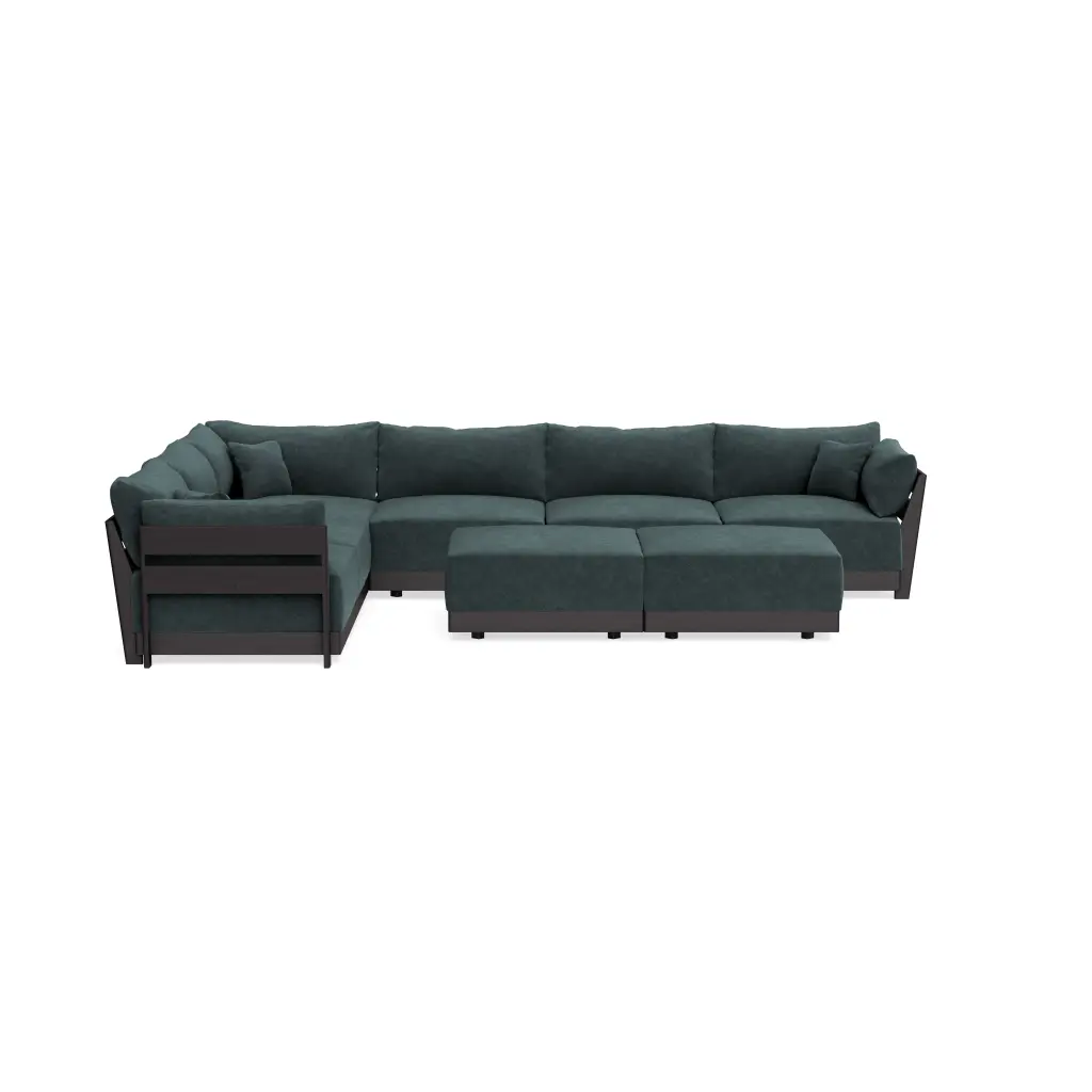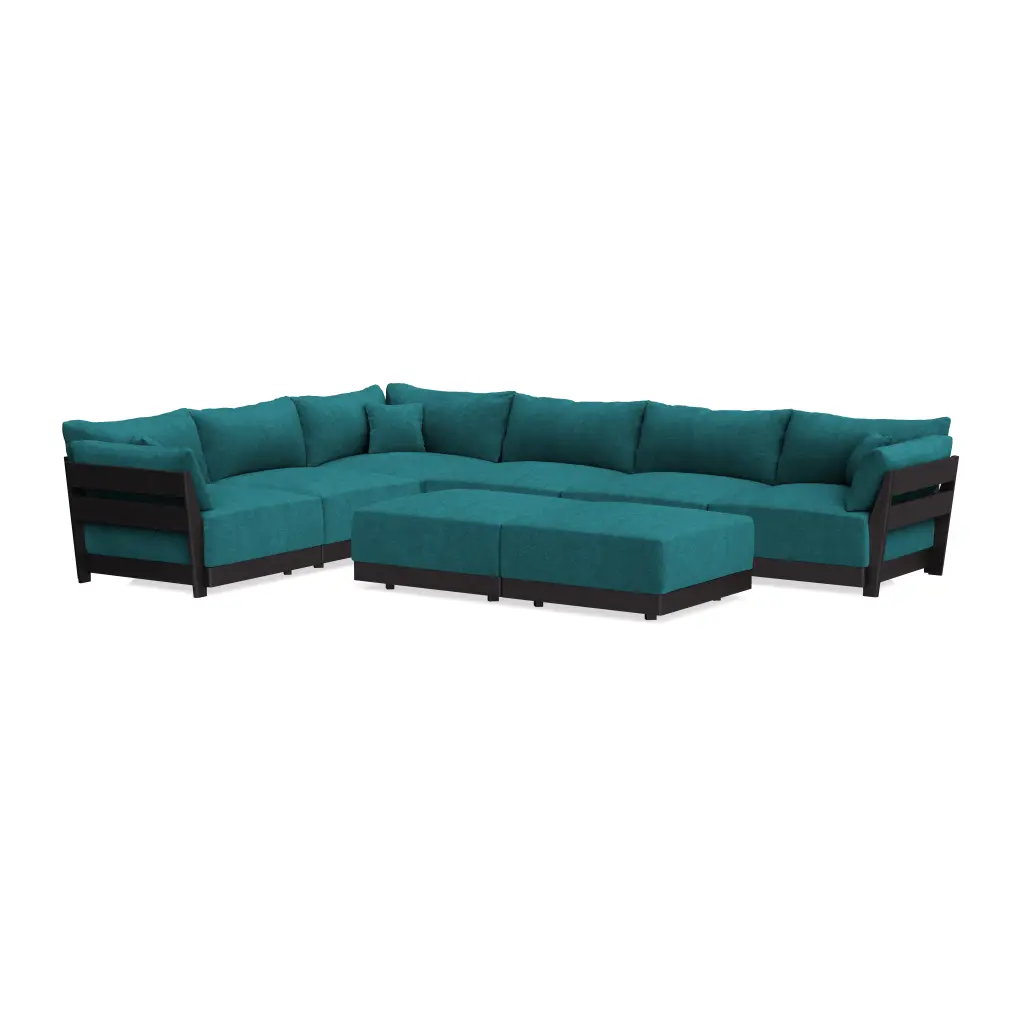 Modular Bondi Black 6-Seater Corner Sectional + Bench Ottoman In Ocean | Memory Foam Blend