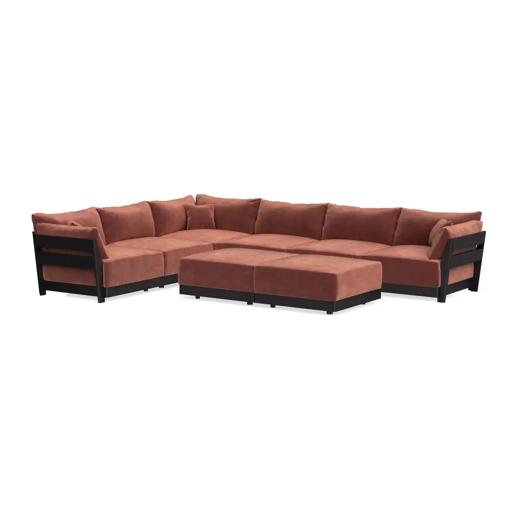 Modular Bondi Black 6-Seater Corner Sectional + Bench Ottoman In Spice | Classic Blend