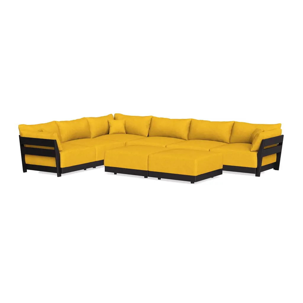 Modular Bondi Black 6-Seater Corner Sectional + Bench Ottoman In Sunflower | Classic Blend