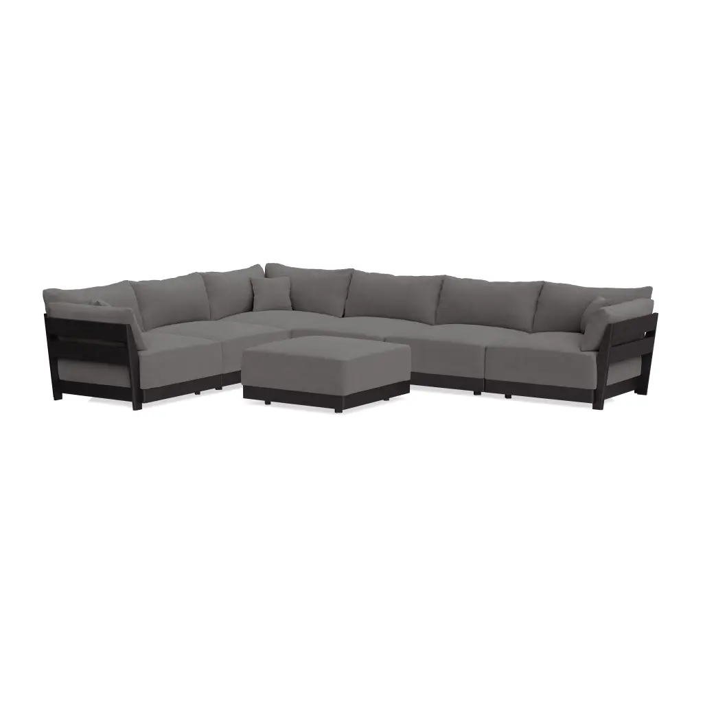 Modular Bondi Black 6-Seater Corner Sectional + Ottoman In Burnt Ember | Memory Foam Blend