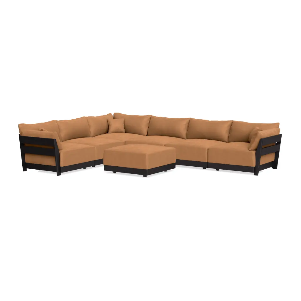 Modular Bondi Black 6-Seater Corner Sectional + Ottoman In Cheddar | Memory Foam Blend