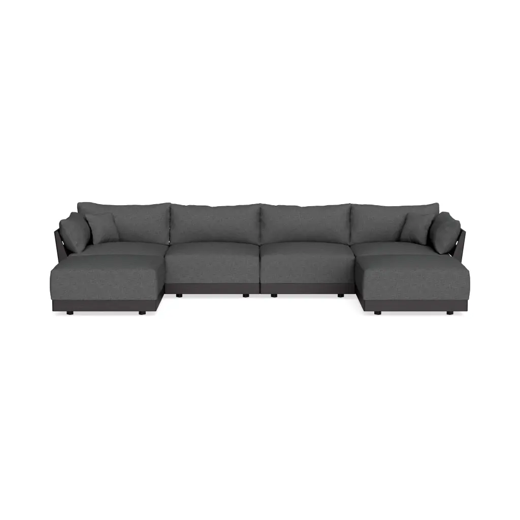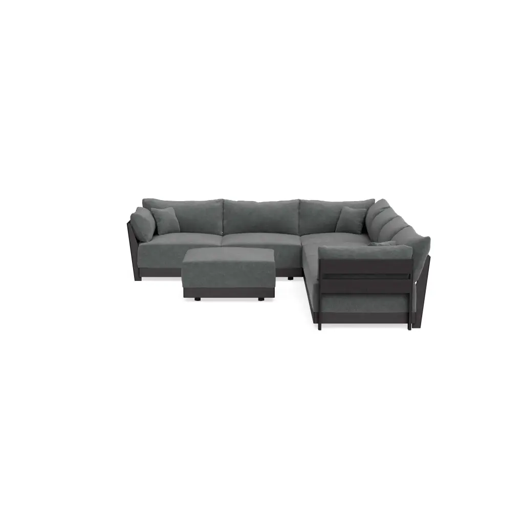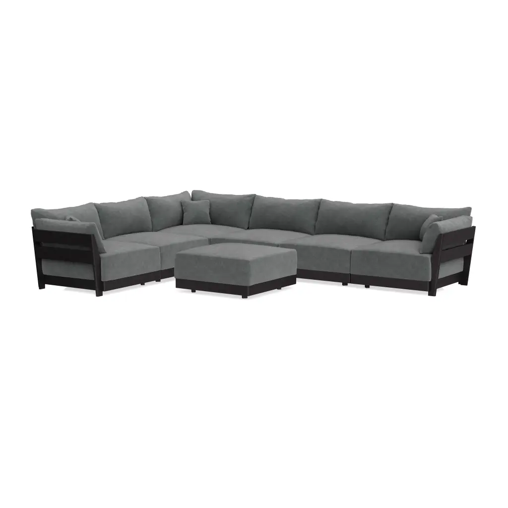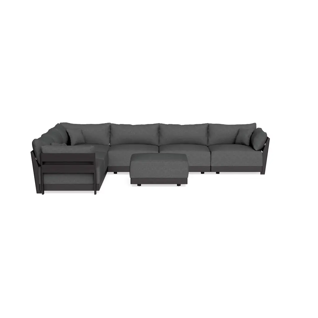 Modular Bondi Black 6-Seater Corner Sectional + Ottoman In Chimney Gray | Memory Foam Blend