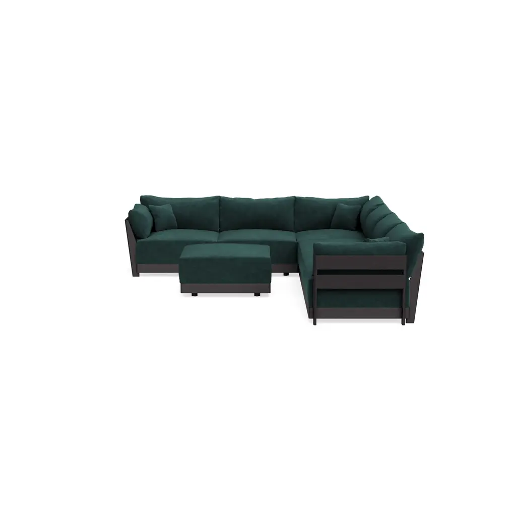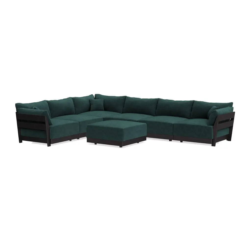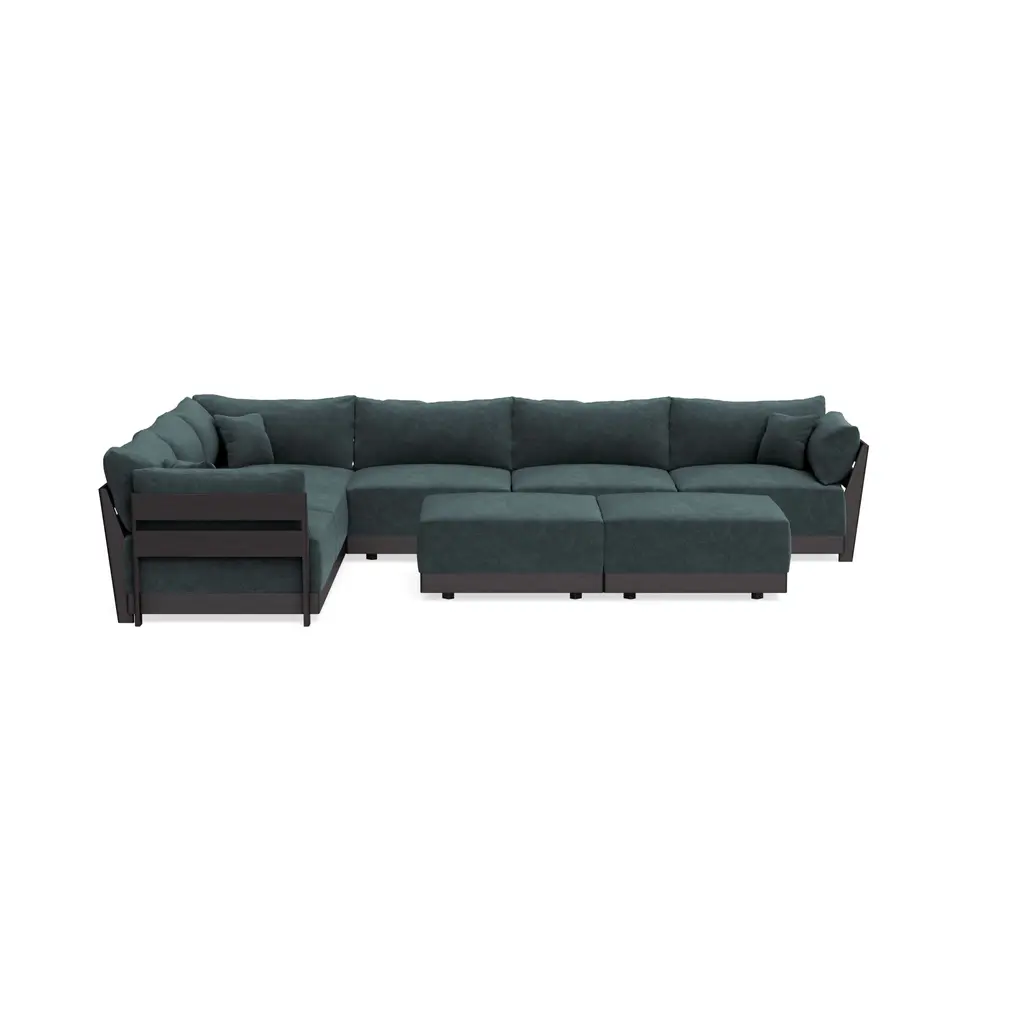 Modular Bondi Black 6-Seater Corner Sectional + Ottoman In Harbor Blue | Classic Blend