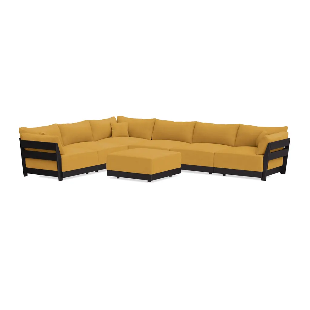 Modular Bondi Black 6-Seater Corner Sectional + Ottoman In Honey | Classic Blend