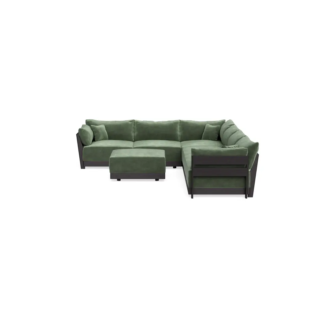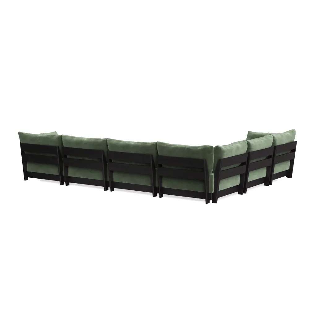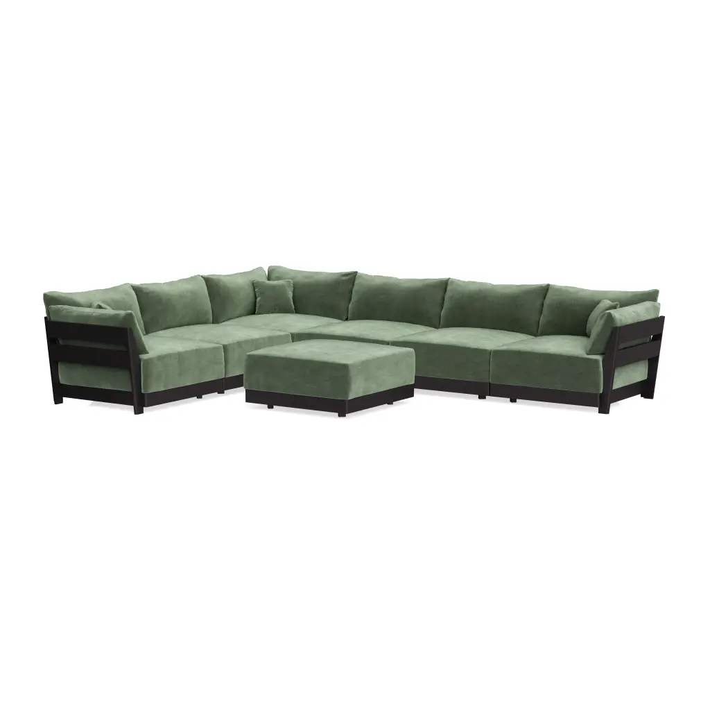 Modular Bondi Black 6-Seater Corner Sectional + Ottoman In Rosemary | Memory Foam Blend