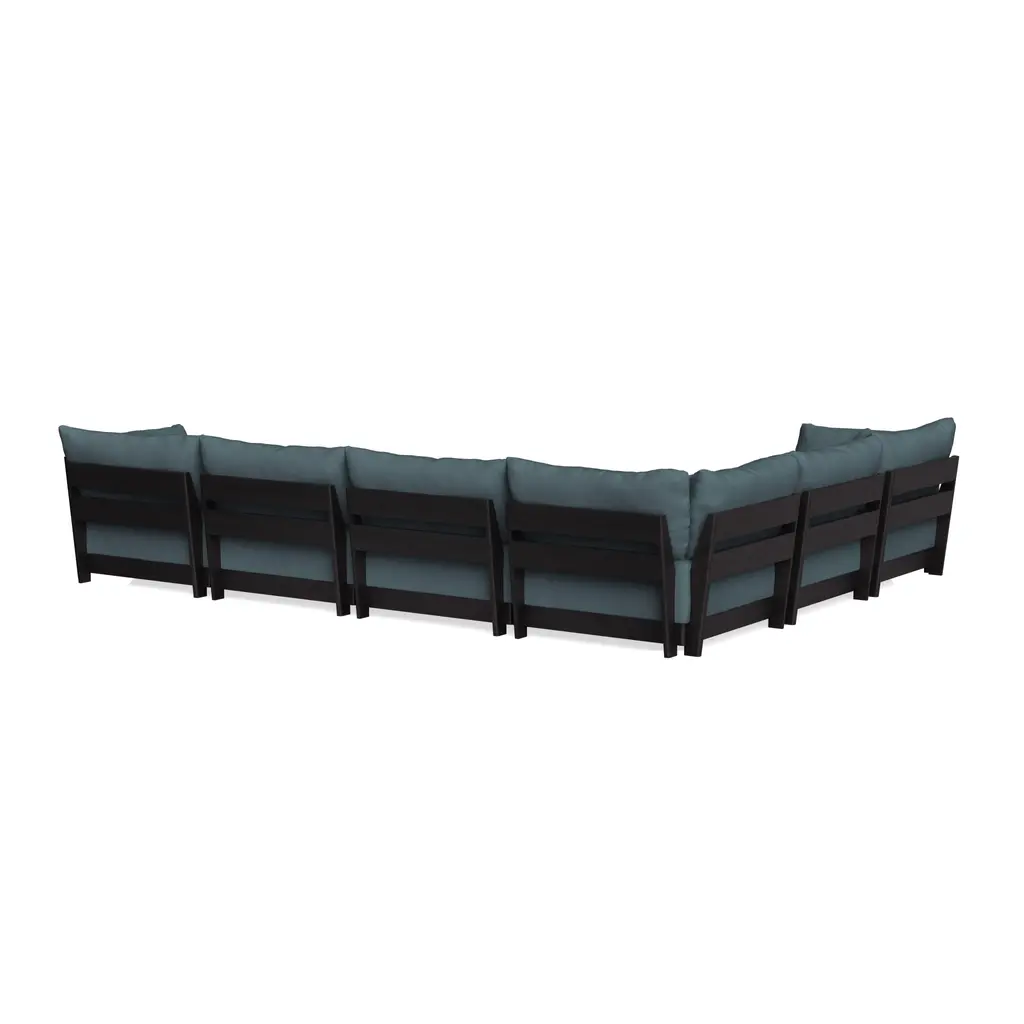 Modular Bondi Black 6-Seater Corner Sectional + Ottoman In Slate Blue | Classic Blend