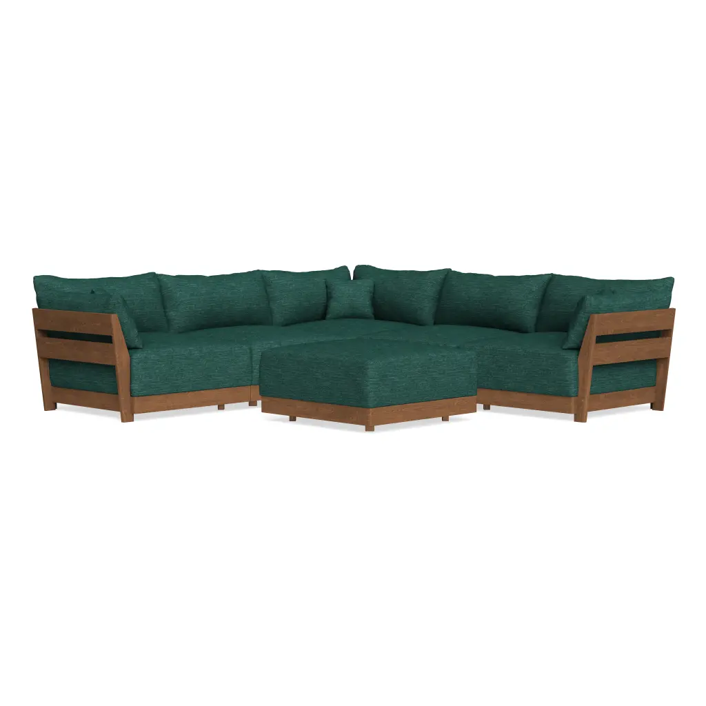 Modular Bondi Espresso 5-Seater Corner Sectional + Ottoman In Forest Green | Classic Blend