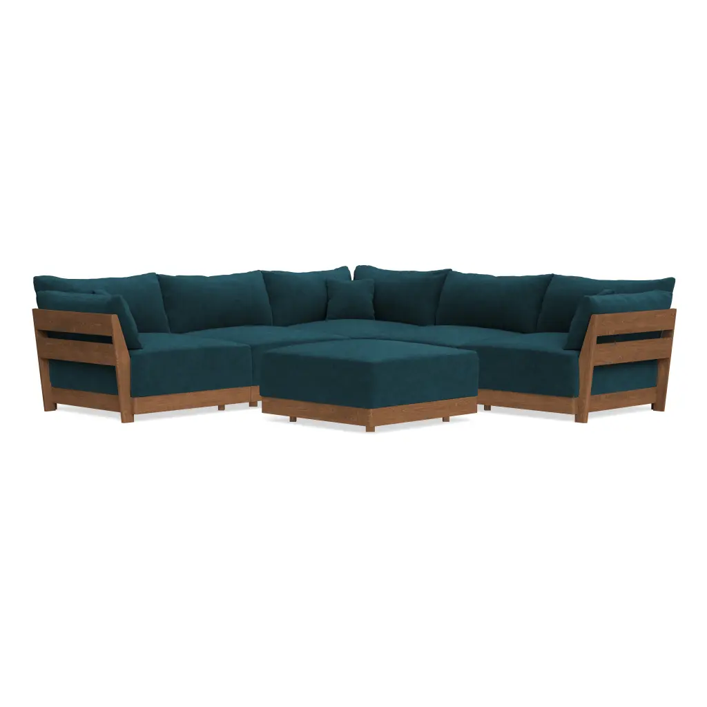 Modular Bondi Espresso 5-Seater Corner Sectional + Ottoman In Indigo | Classic Blend