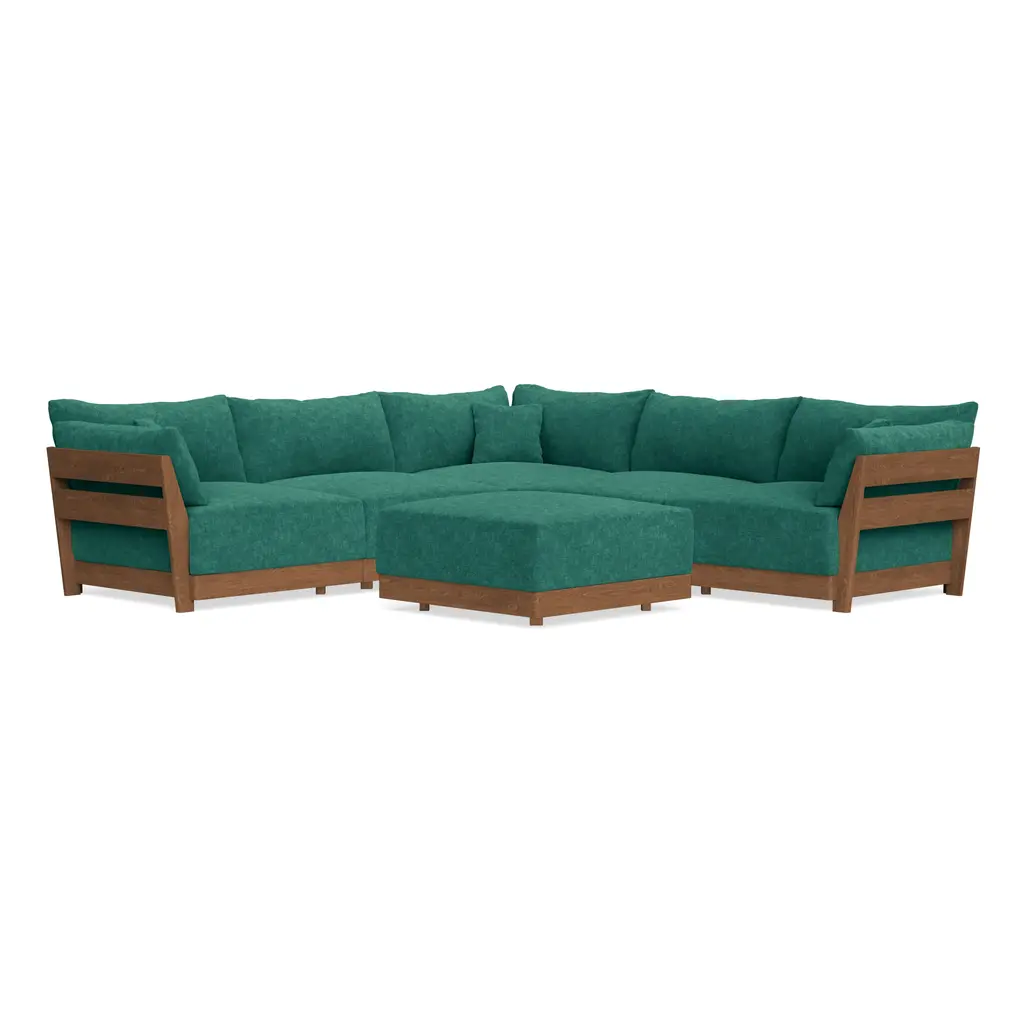 Modular Bondi Espresso 5-Seater Corner Sectional + Ottoman In Jade Green | Memory Foam Blend