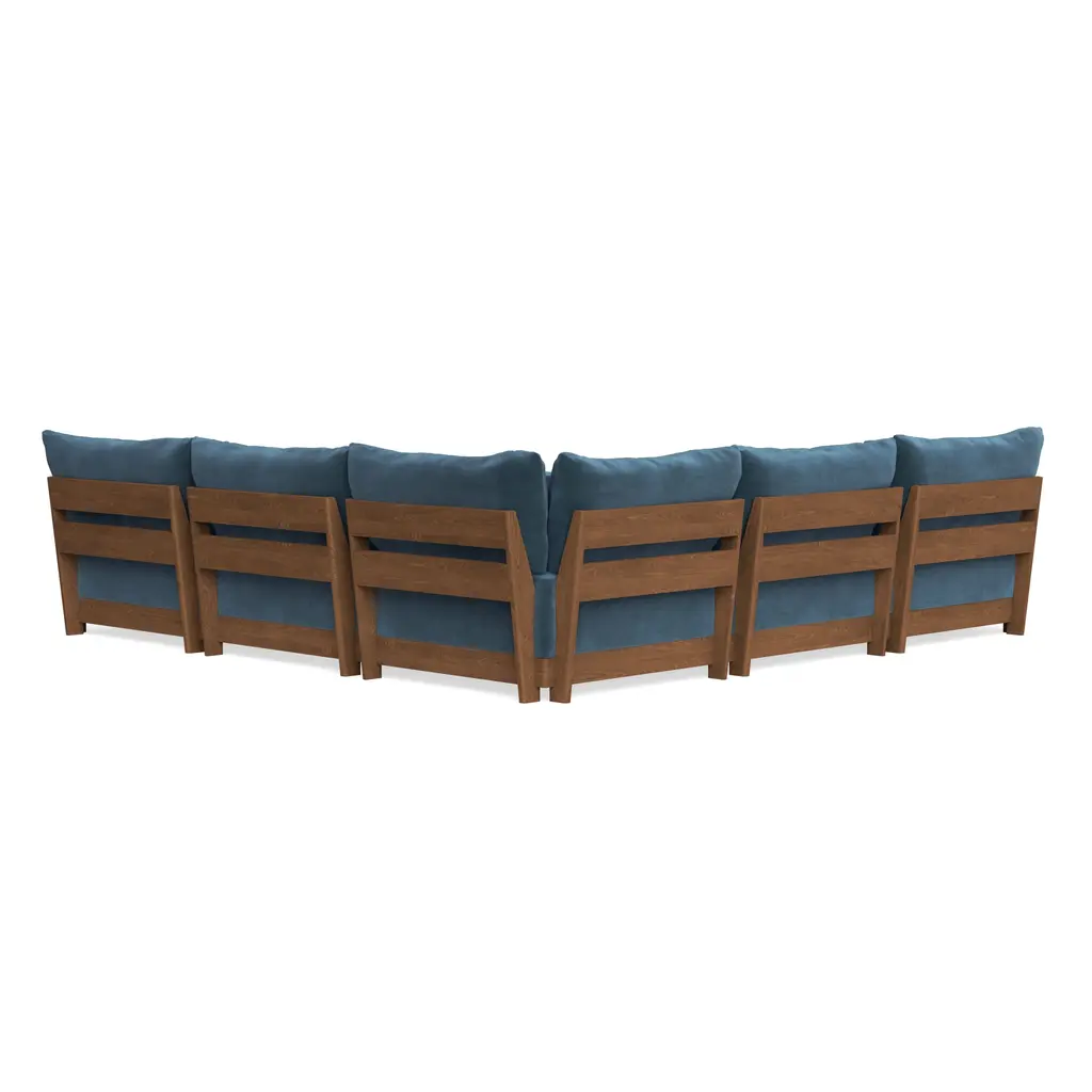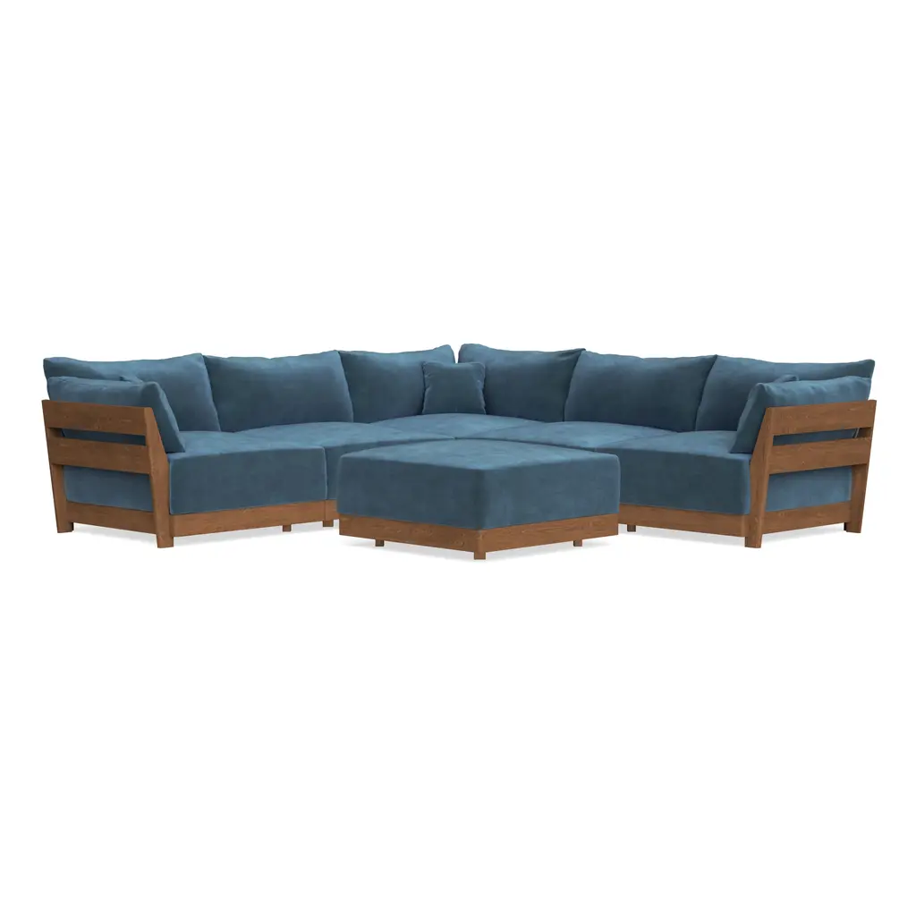 Modular Bondi Espresso 5-Seater Corner Sectional + Ottoman In Oxford Blue | Memory Foam Blend