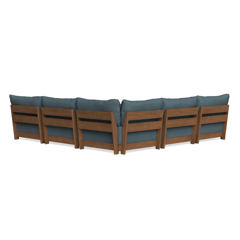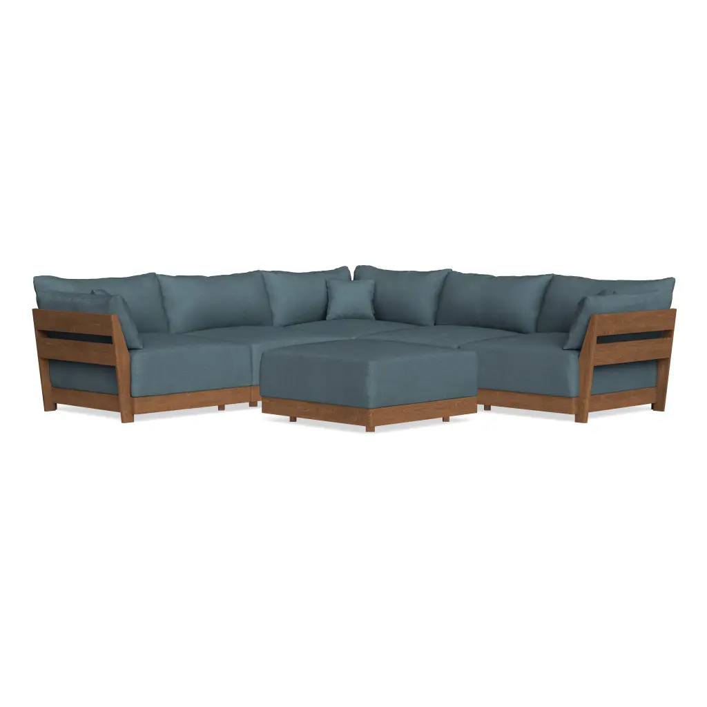 Modular Bondi Espresso 5-Seater Corner Sectional + Ottoman In Slate Blue | Classic Blend
