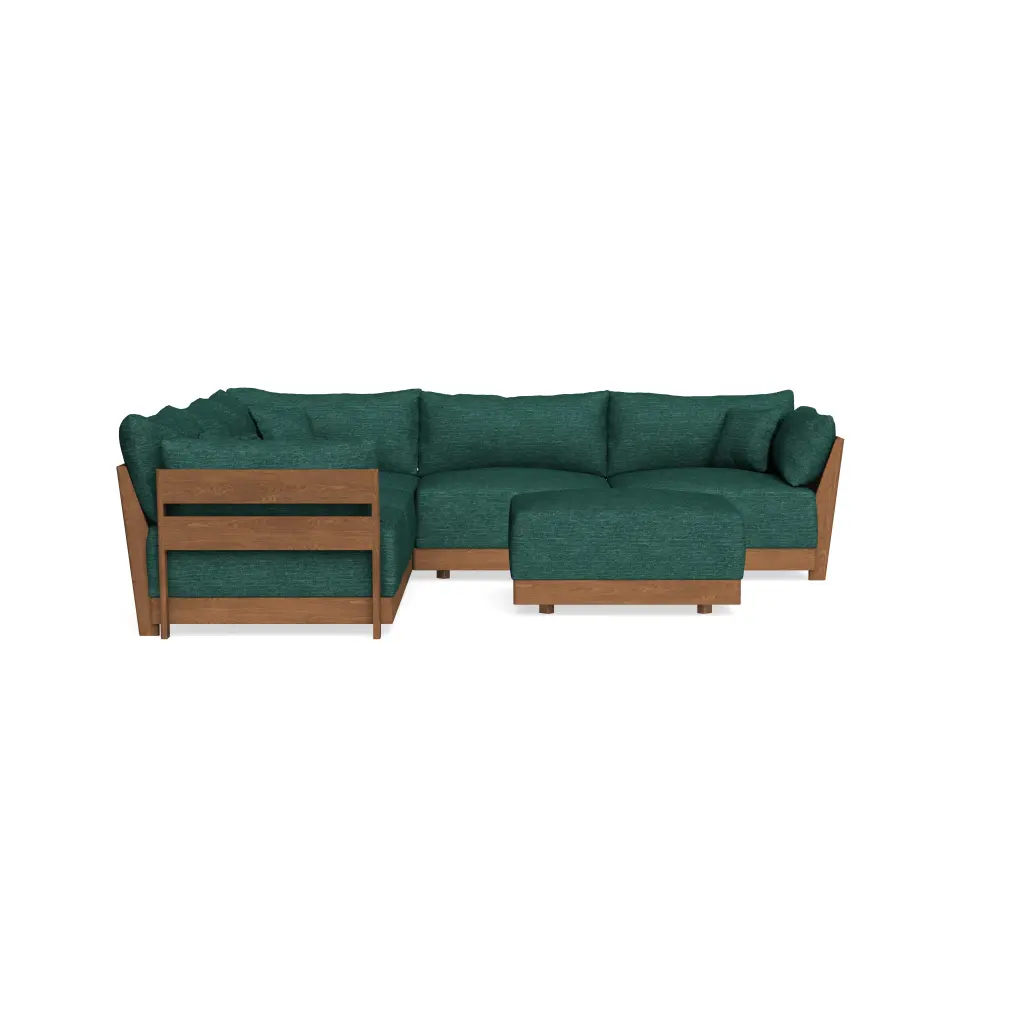 Modular Bondi Espresso 5-Seater Corner Sectional + Ottoman In Tuscan Green | Memory Foam Blend