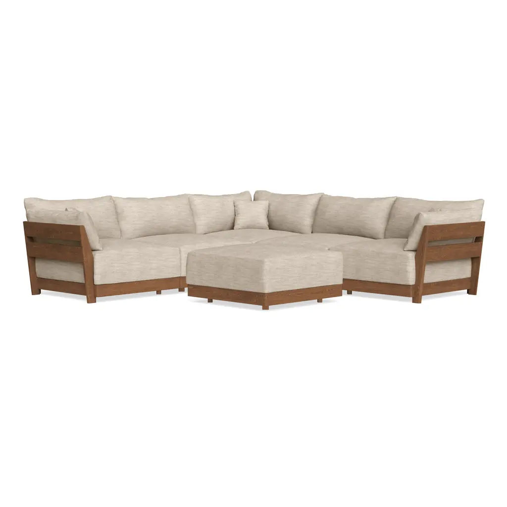 Modular Bondi Espresso 5-Seater Corner Sectional + Ottoman In Wheat | Classic Blend