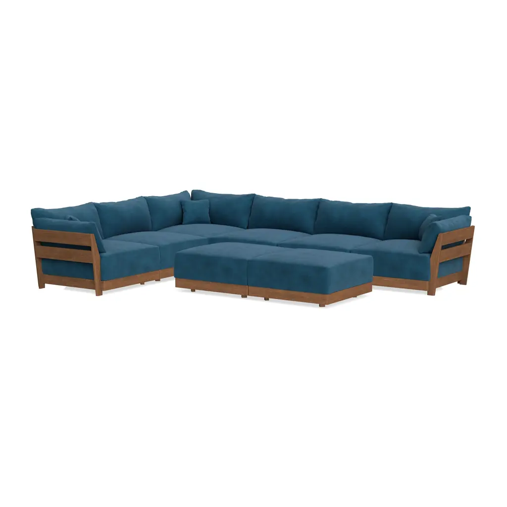 Modular Bondi Espresso 6-Seater Corner Sectional + Bench Ottoman In Commodore Blue | Classic Blend