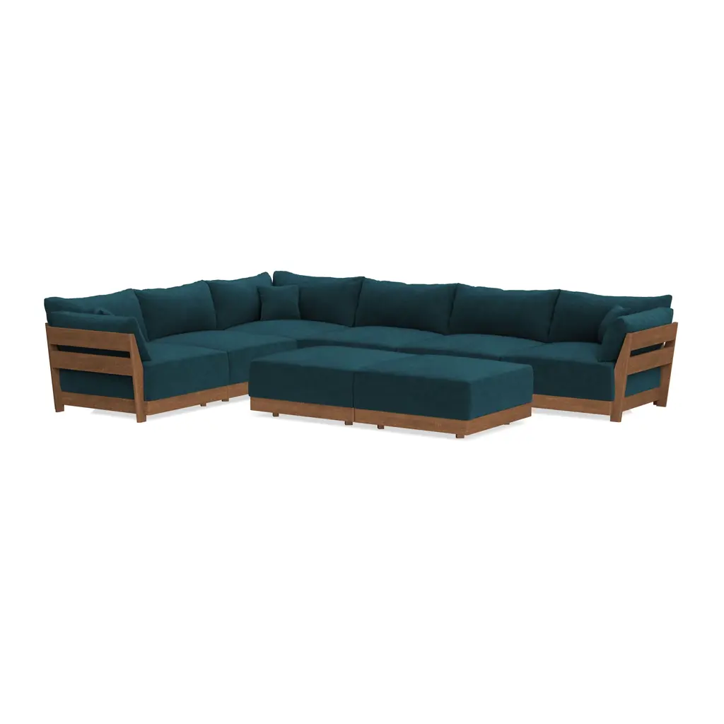 Modular Bondi Espresso 6-Seater Corner Sectional + Bench Ottoman In Indigo | Classic Blend