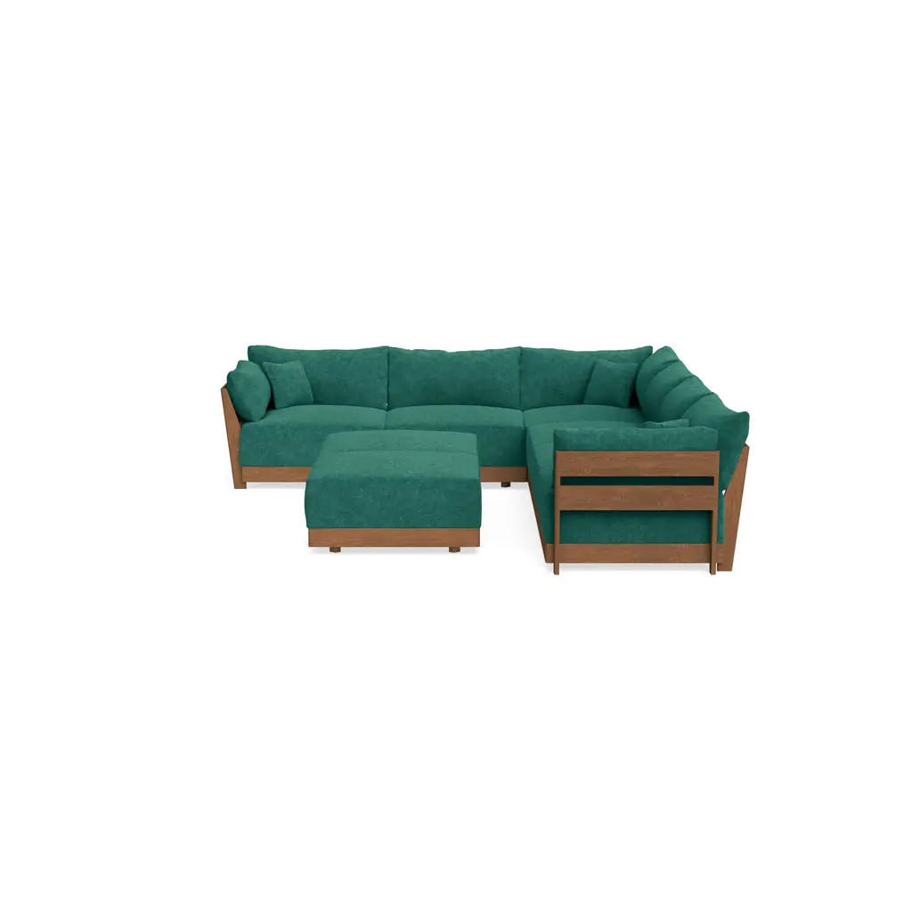 Modular Bondi Espresso 6-Seater Corner Sectional + Bench Ottoman In Jade Green | Classic Blend