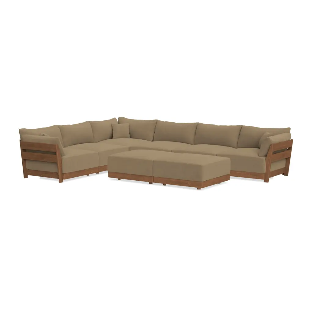 Modular Bondi Espresso 6-Seater Corner Sectional + Bench Ottoman In Macchiato | Memory Foam Blend