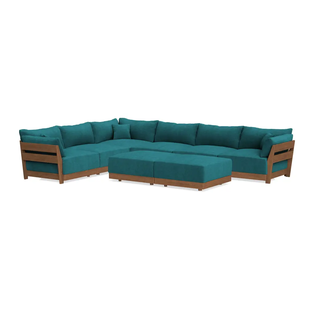 Modular Bondi Espresso 6-Seater Corner Sectional + Bench Ottoman In Ocean | Classic Blend