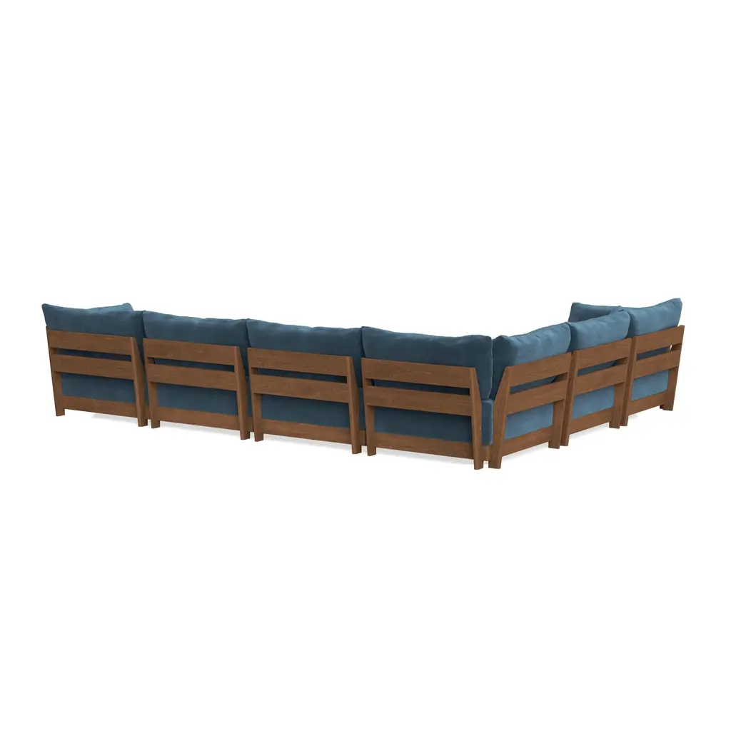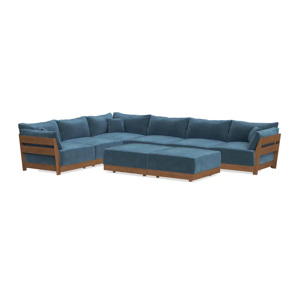 Modular Bondi Espresso 6-Seater Corner Sectional + Bench Ottoman In Oxford Blue | Memory Foam Blend